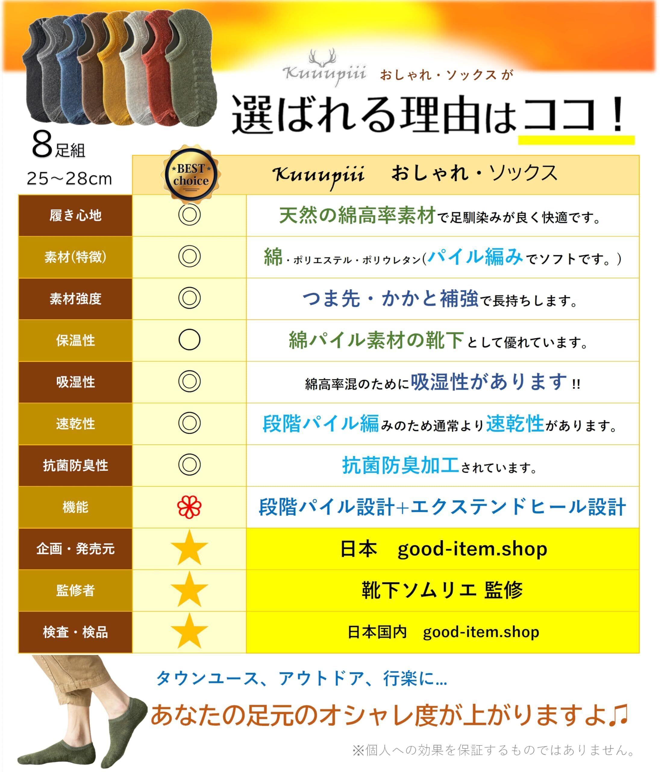 [kuuupiii] 【靴下ソムリエ監修】 スニーカーイン スニーカーソックス フットカバー 深履き 靴下 メンズソックス パイル編み スポーツソックス カジュアルソックス 綿 春夏秋