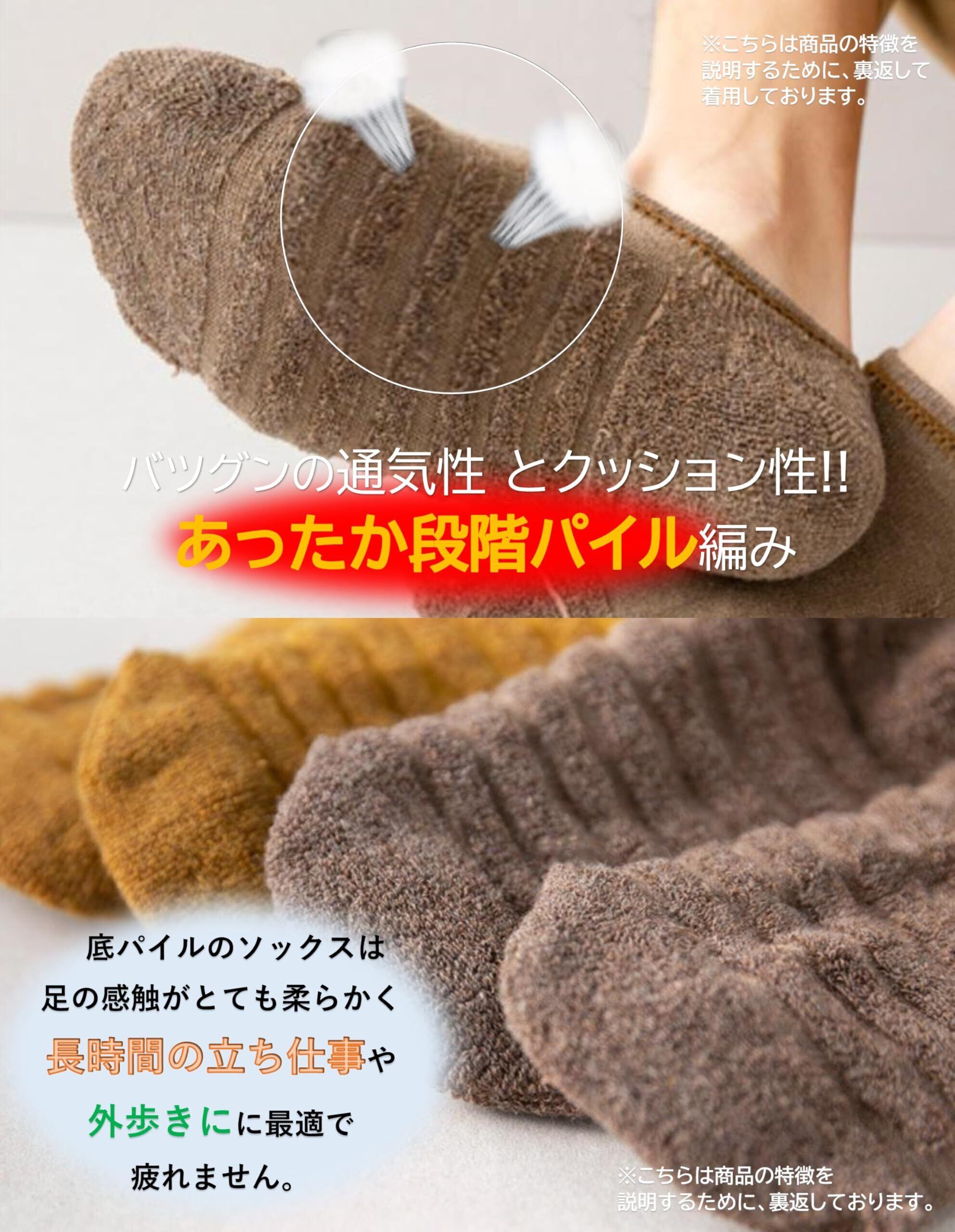 【kuuupiiiさわやか底パイルスニーカーインソックスの機能特徴】 ・足底パイル編み仕様ですが、特に「段階パイル設計」にすることで足裏のムレをなくし衛生的で一日を快適に過ごせます。 ・段階パイル設計でスポーツソックスのようなソフトな履き心地で一日履いても疲れ知らずで過ごせます。 ・特に長時間の立ち仕事や春夏秋の軽ハイキングなどに最適です。