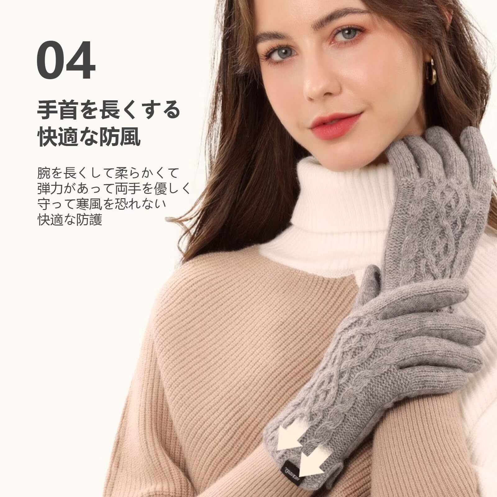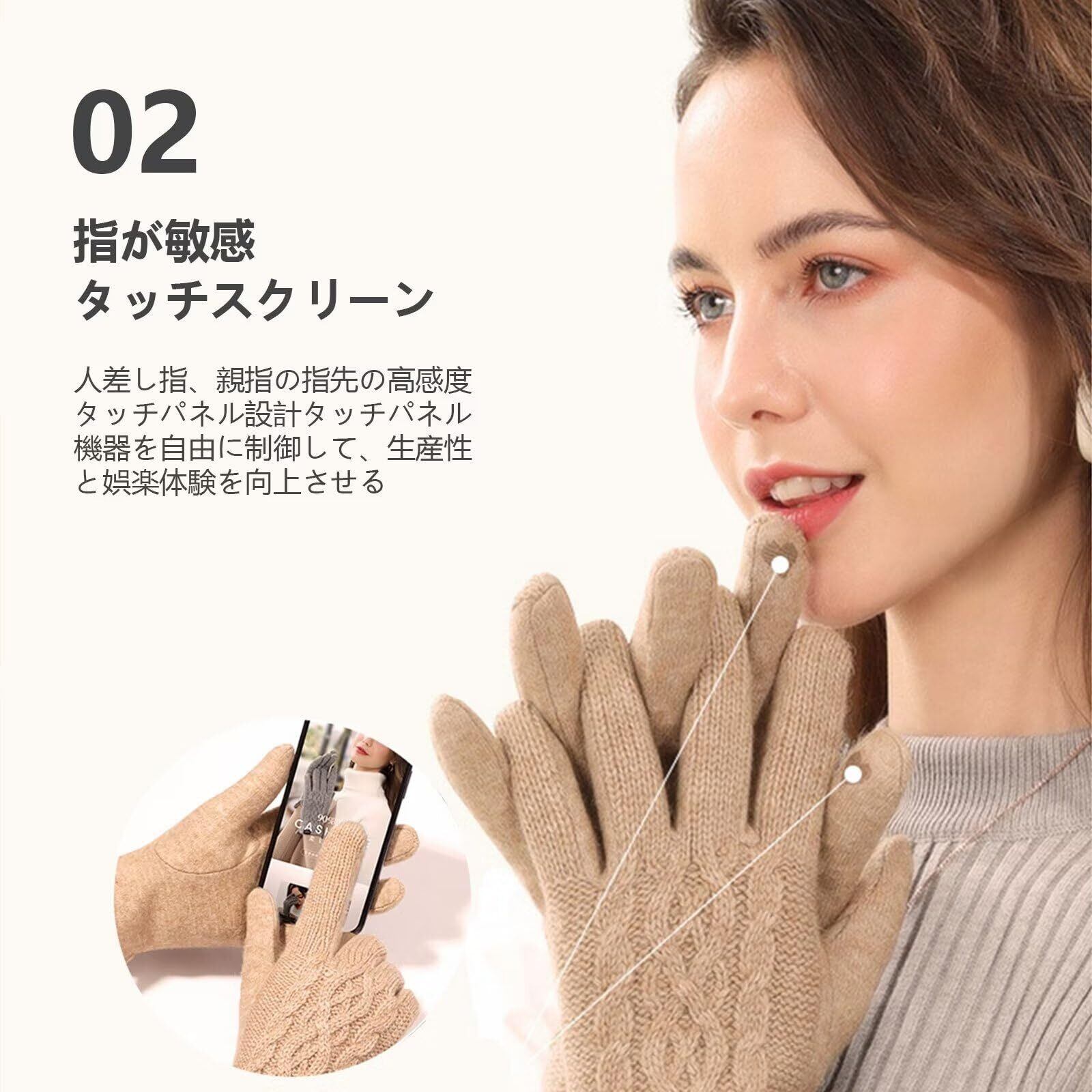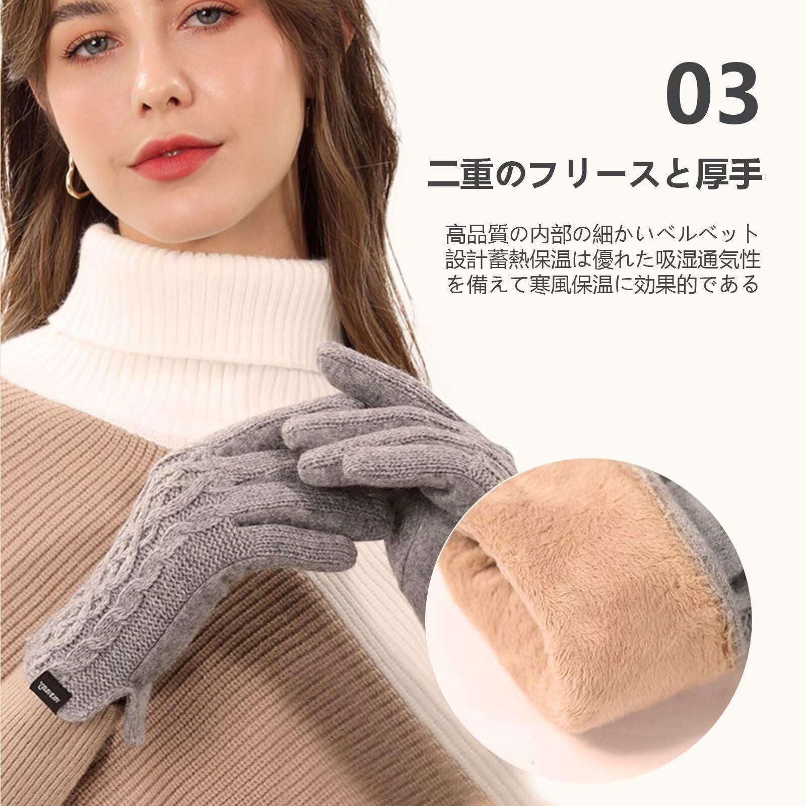 【保温性抜群】 当手袋は二層構造で、表面に高断熱性のアクリル繊維を使用し、柔らかな風合いと保温性を実現しています。着用すると瞬時に温度が上昇し、非常に暖かいです。裏側には柔らかいフリース裏地があり、熱をしっかり保持し、肌に優しい快適な装着感を提供します。指先までフリース裏地が広がり、手全体を温めます。