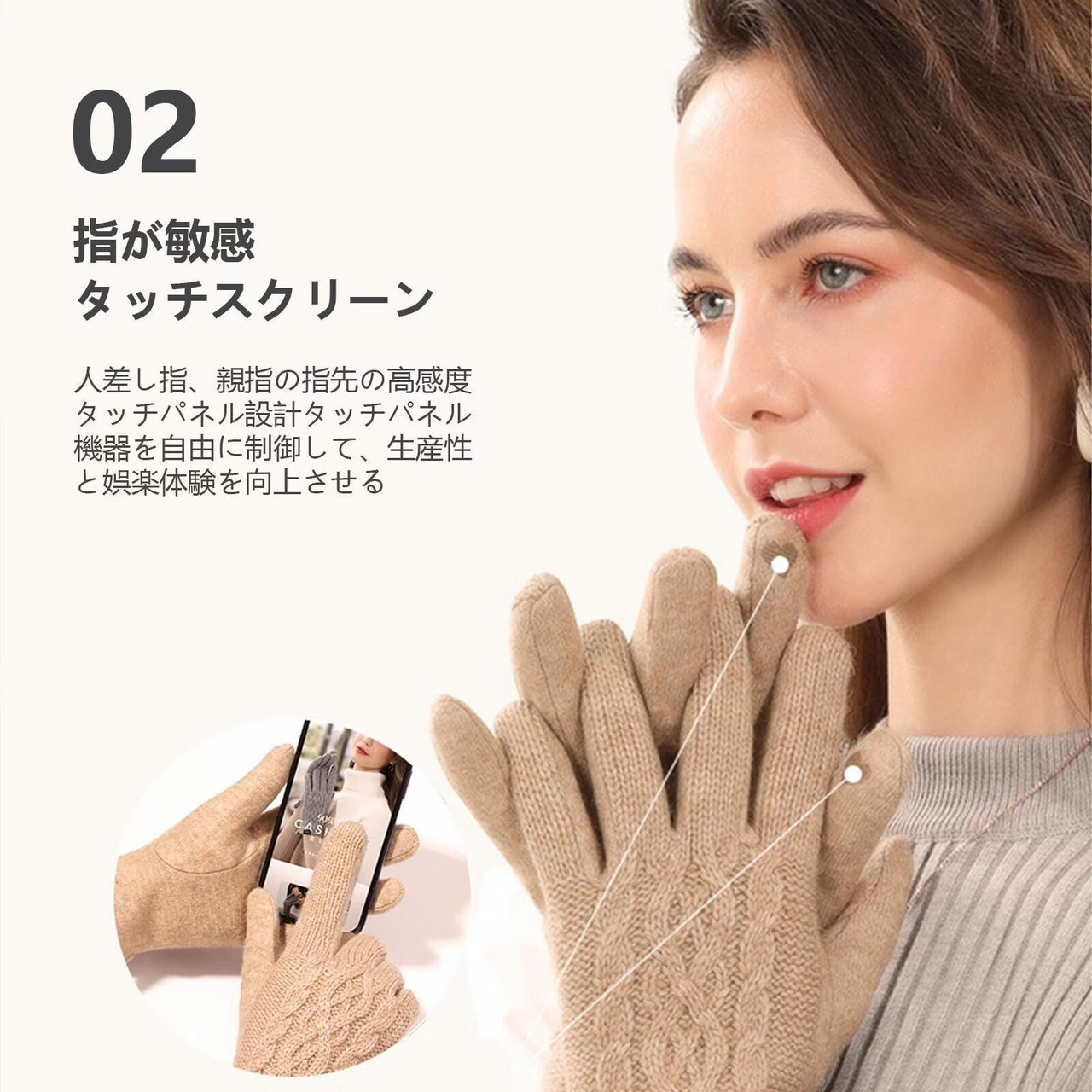 【使い勝手のスマホ手袋】 これらの冬用手袋を着用したままでも、スマートフォンやタブレットなどのタッチパネルを操作できます。親指と人差し指にはスマートフォン対応の生地が組み込まれており、室内外で安心して携帯電話を使用できます。手袋を装着していても、手の自由度に影響を与えず、違和感を感じません。