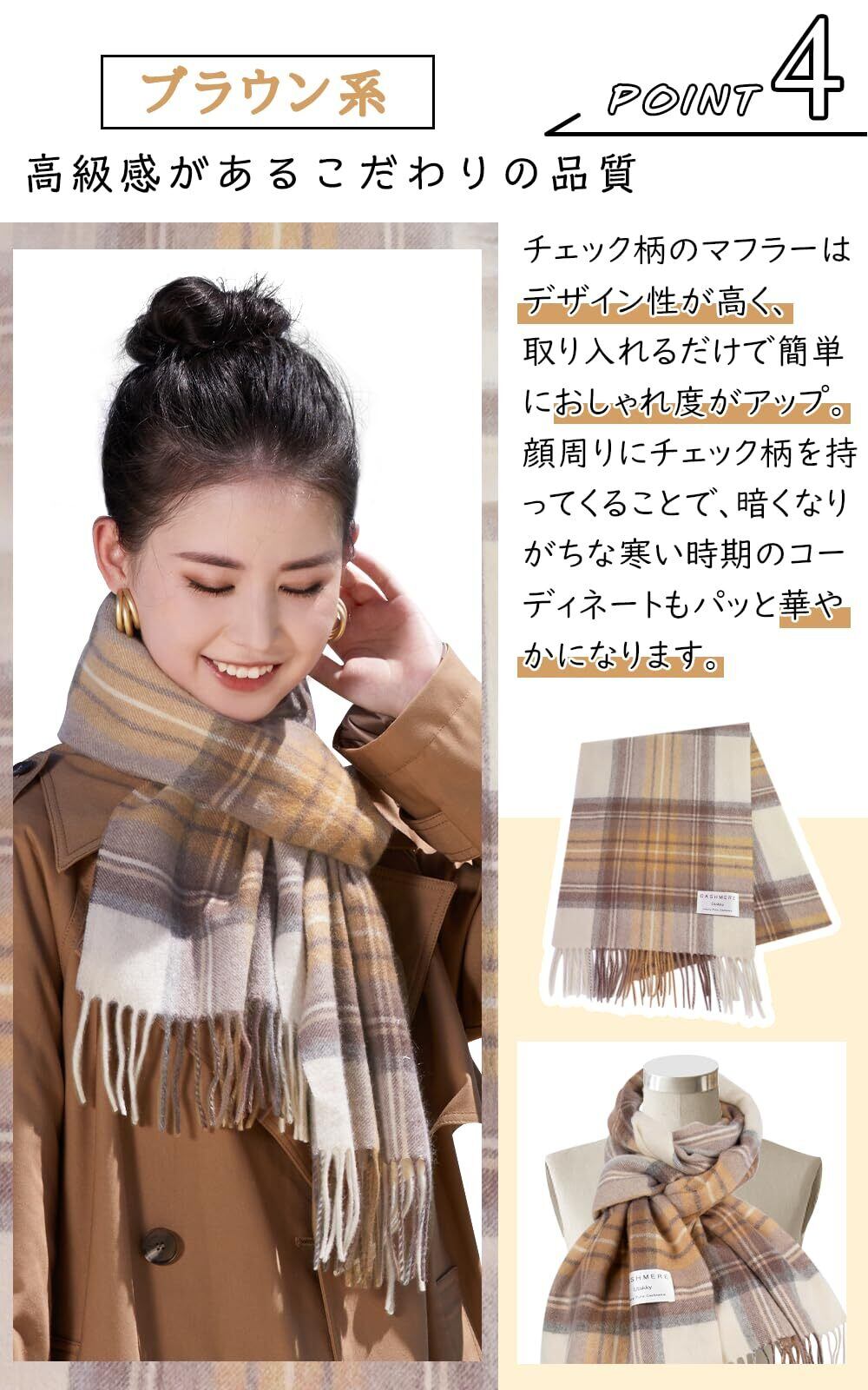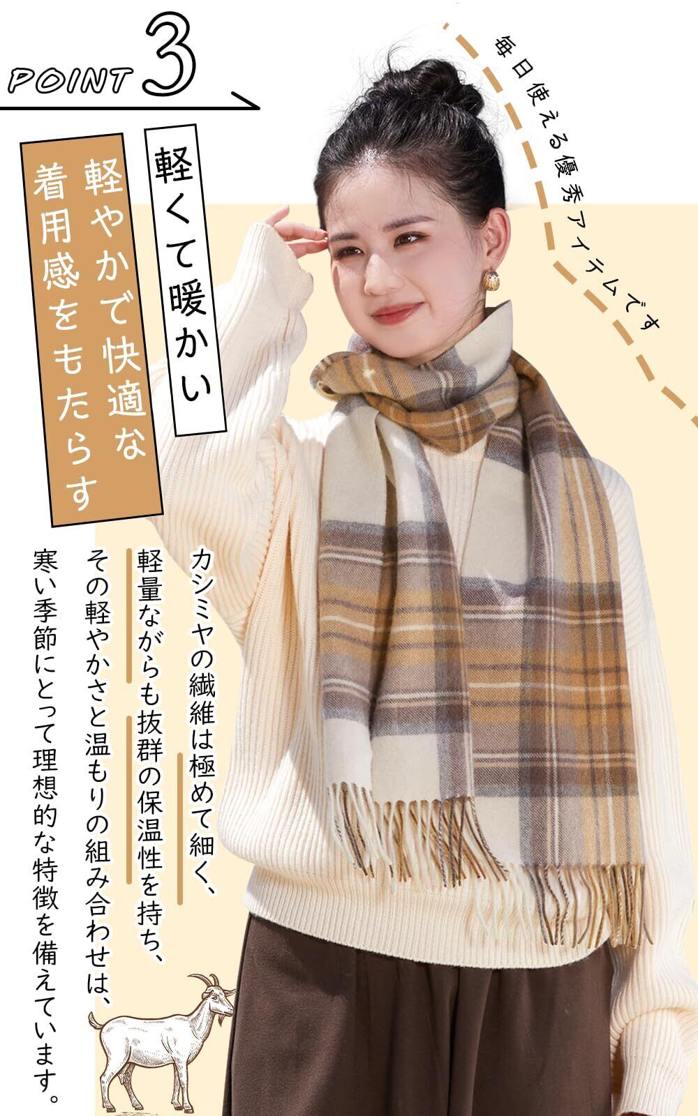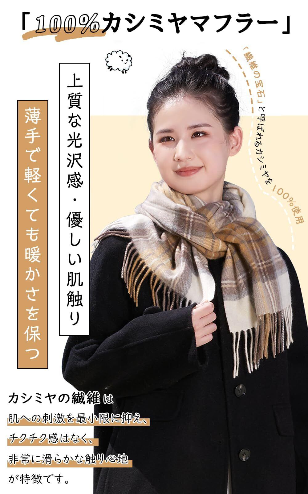 [Utukky] カシミヤマフラー レディース カシミヤ100% チェック柄 カシミヤストール 内モンゴル産高級カシミヤ スカーフ 大判 厚手マフラー 冬 防寒 ふんわり 誕生日 結婚式 クリスマス プレゼント 贈り物 男女兼用