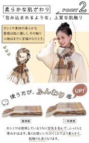 【上質な光沢感・優しい肌触り】細くしなやかなカシミヤの繊維を使用しているため、肌触りがとても柔らかくなっています。また繊維表面に突起が少ないため、美しい光沢感を実現。繊推に含まれる水分や油脂が表面を覆うことで、カシミヤならではの風合いを醸し出します。また、カシミヤマフラーは使用しているうちに空気を含んで、ふっくらと厚みが出ます。長くお使いいただくことでより柔らかく、肌触りも良くなります。マフラー製品にありがちな起毛感が苦手な方はぜひお試ししてみてはいかがでしょうか。