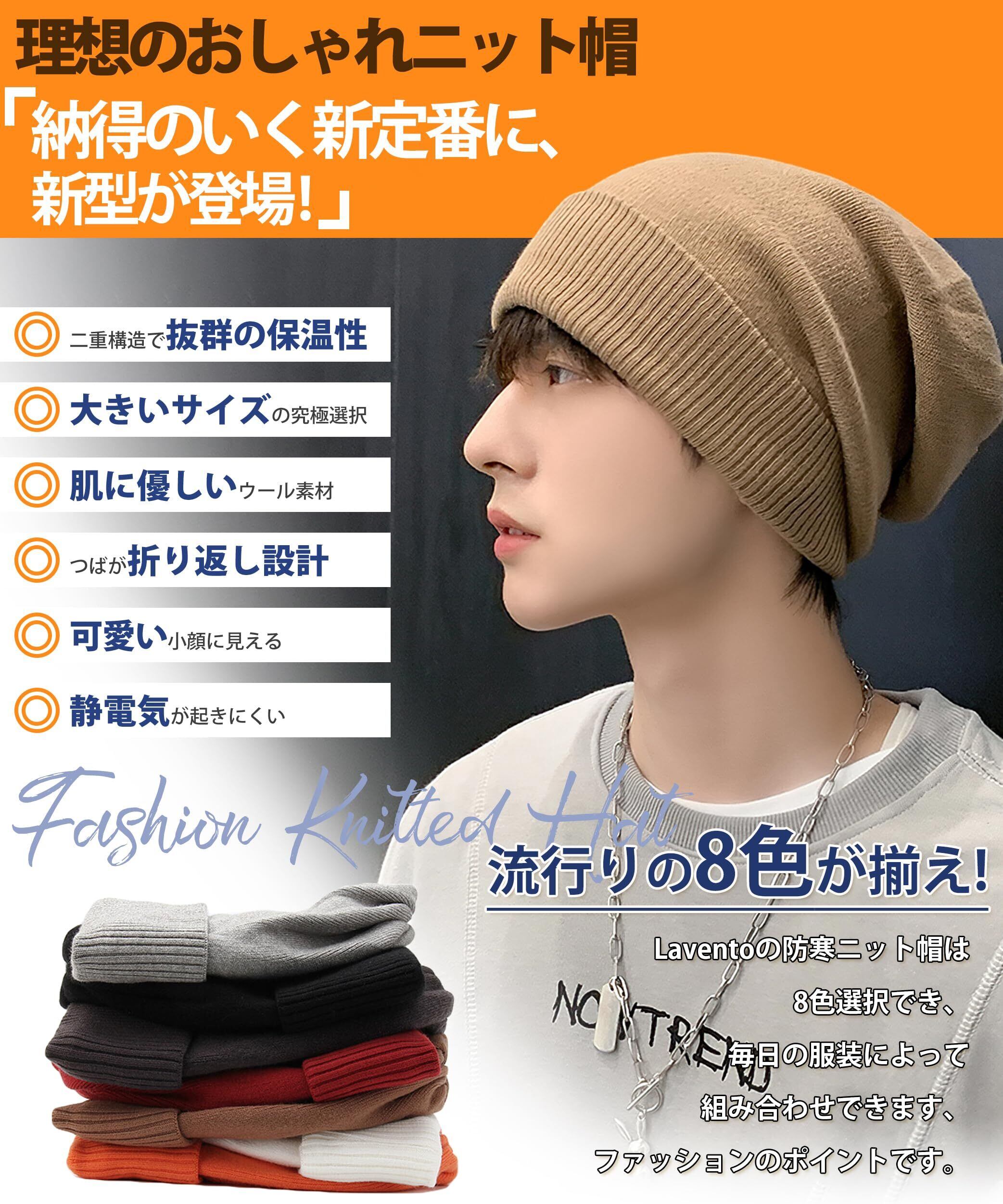 【特価商品】[Lavento] ニット帽 メンズ 秋 冬 【大きいサイズの究極選択!・保温強化・軽くて暖かいの素材】 ニット帽子 防寒帽子 帽子 ニットキャップ 肌に優しい 無地 通気 ふんわり アウトドア 旅行 男女兼用