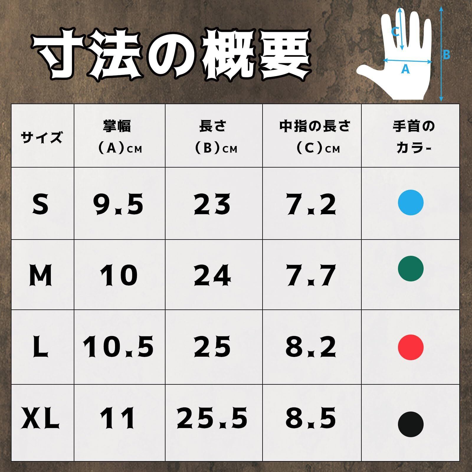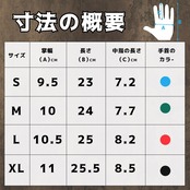 【適用サイズ】手袋の全長:S:23cm、M:24cm、L:25cm、XL:25.5cm,詳細なサイズ選択は画像を参照。