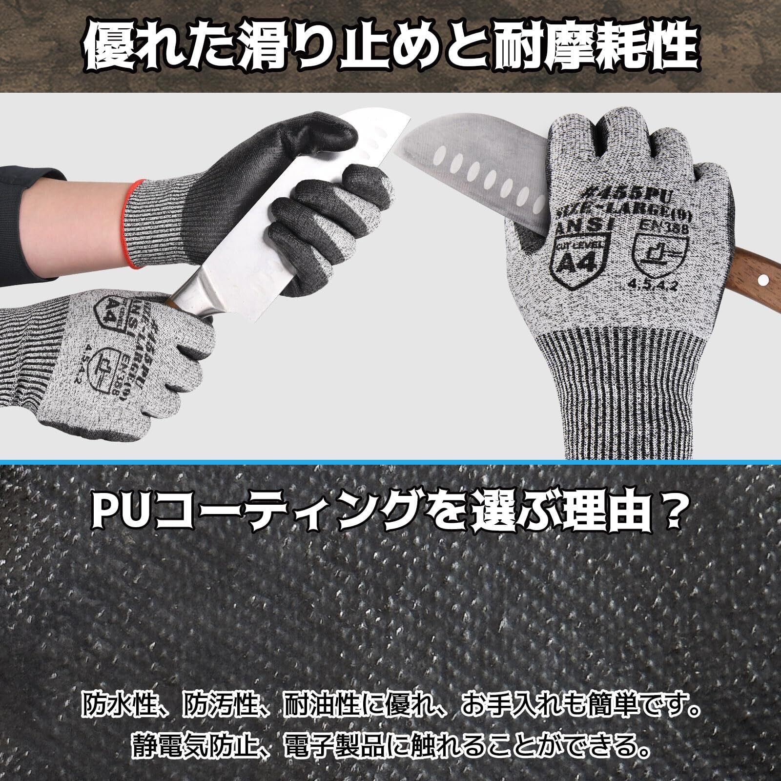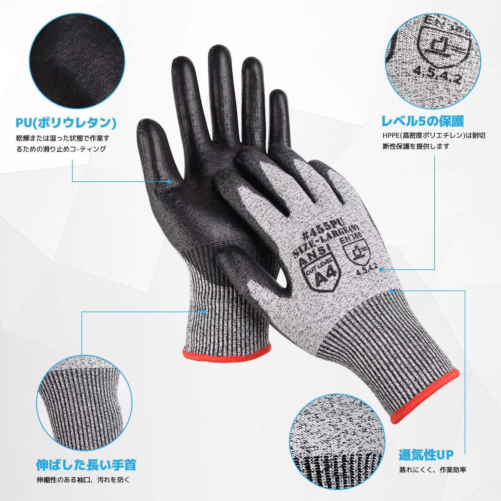 [DONFRI] 軍手 耐切創手袋 防刃 防刃手袋 作業用 手袋 滑り止め 切れない 防災 PUコーティング レベル5の耐切断性 (1双パック, L)