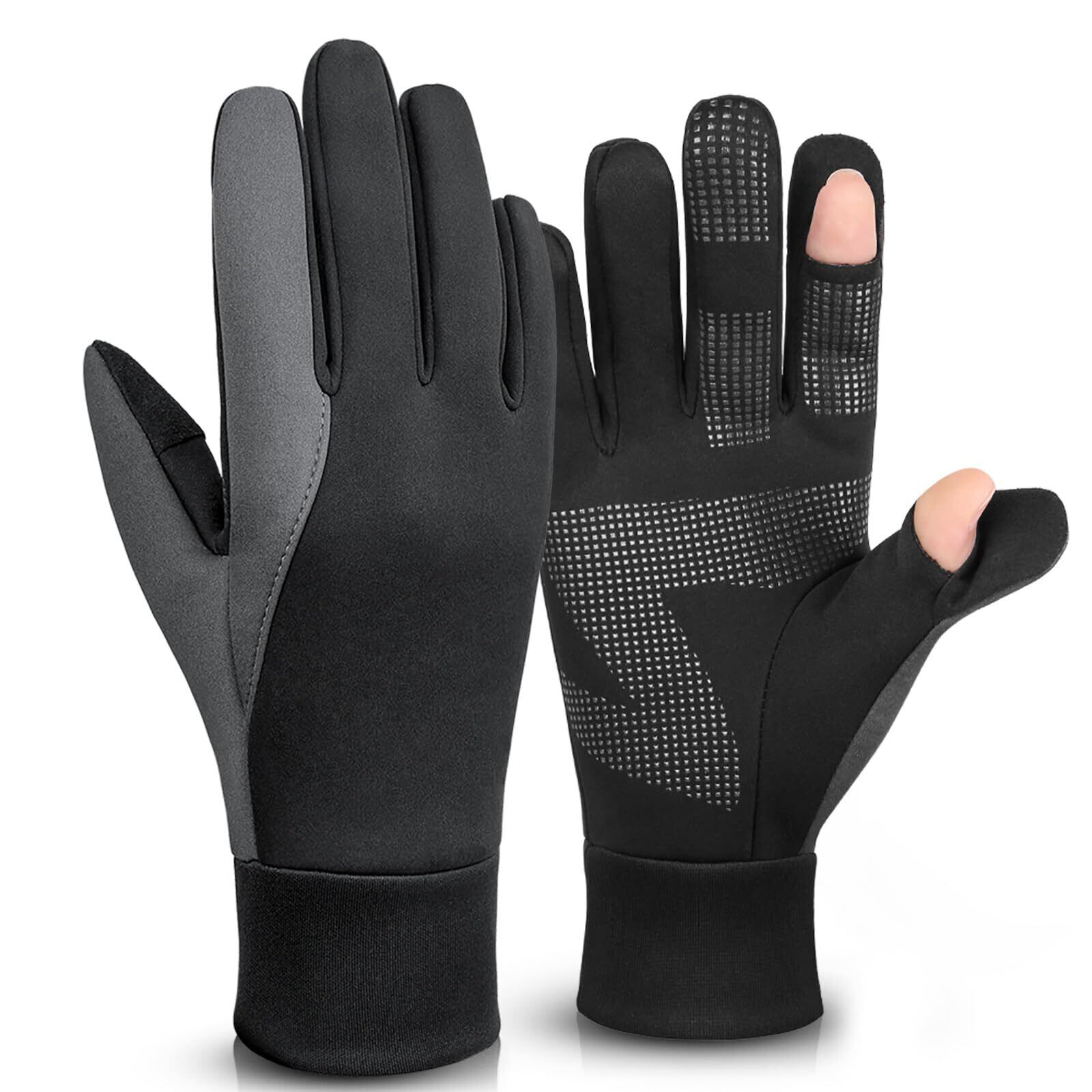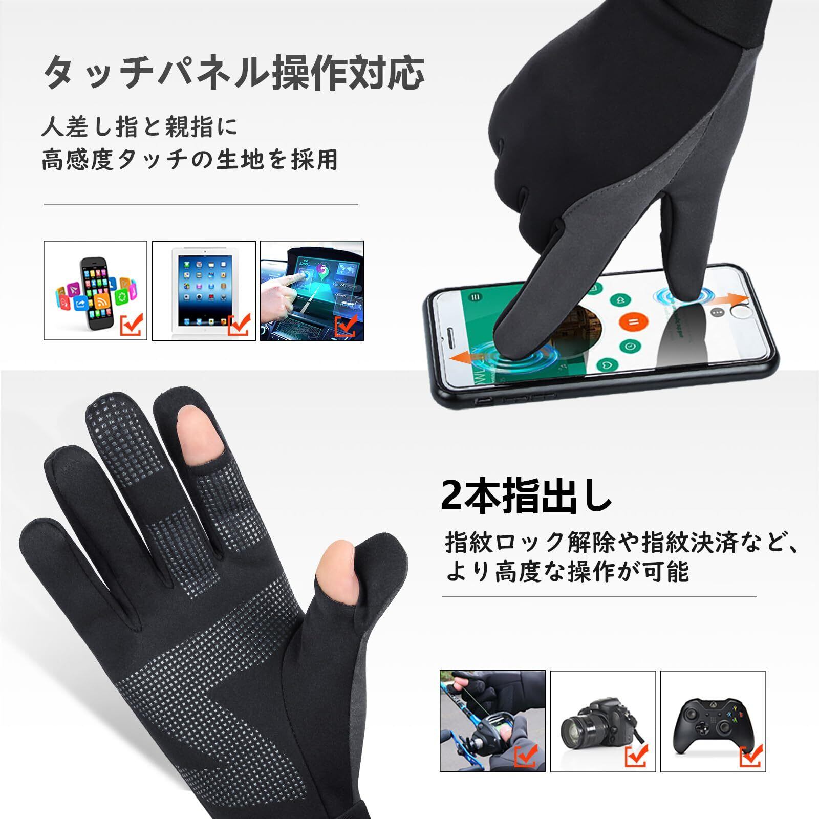 [Cierto] 手袋 メンズ 防寒 スマホ対応 2本指出し 防寒手袋 ランニング グローブ 撥水 冬 中厚手 裏起毛 滑り止め 防風 釣り サッカー 自転車 登山 運転