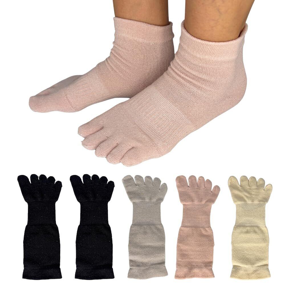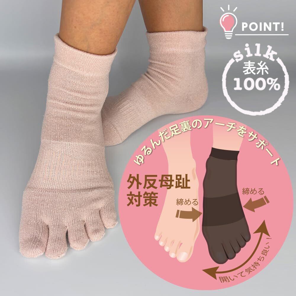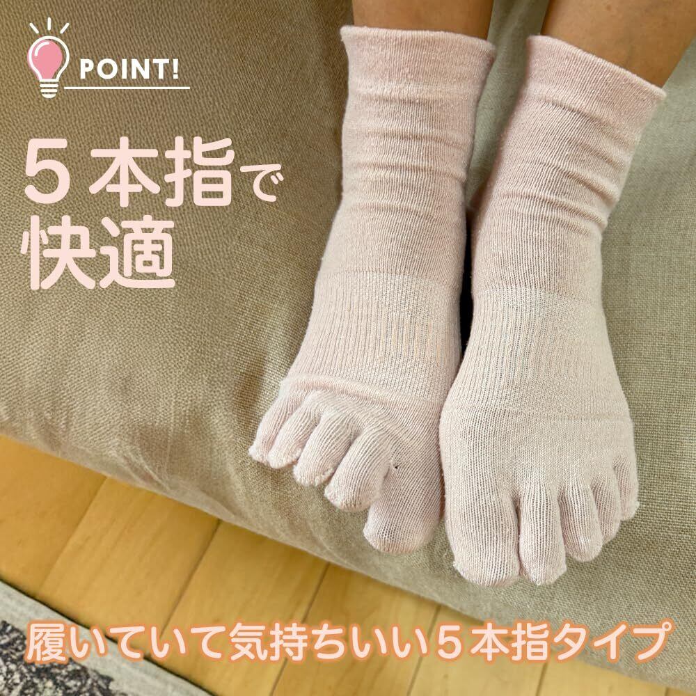【外反母趾対策・冷え取りサポート】 外反母趾でお悩みの方におすすめのサポートソックス。親指と他の指を自然に広げる設計で、圧迫を軽減。やさしいフィット感で長時間の着用でも快適です。