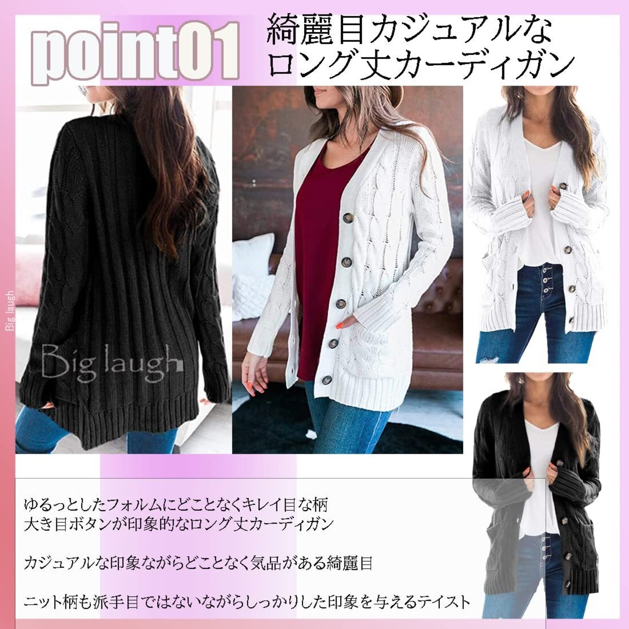 今回は『[ ビッグ ラフ ] トップス カーディガン ボタン ポケット 腰 ロング 丈 ニット セーター ゆるっと カットソー レディース 』の出品になります。