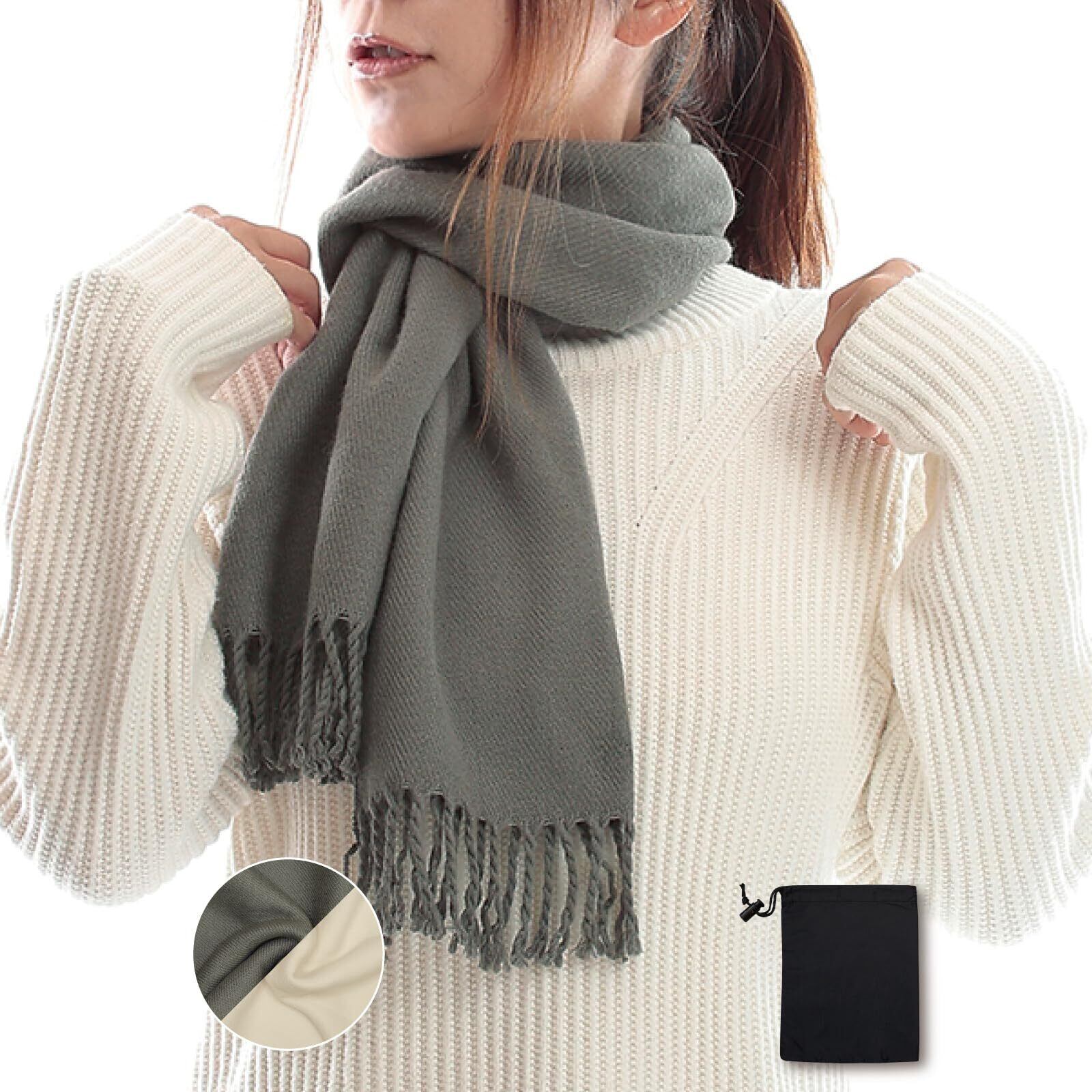 [MAFUWA] 心地よい巻感 ふんわり 軽い マフラー 男女兼用 カシミヤタッチ 暖かい 中判 (35cm×170cm/100g/収納袋付)