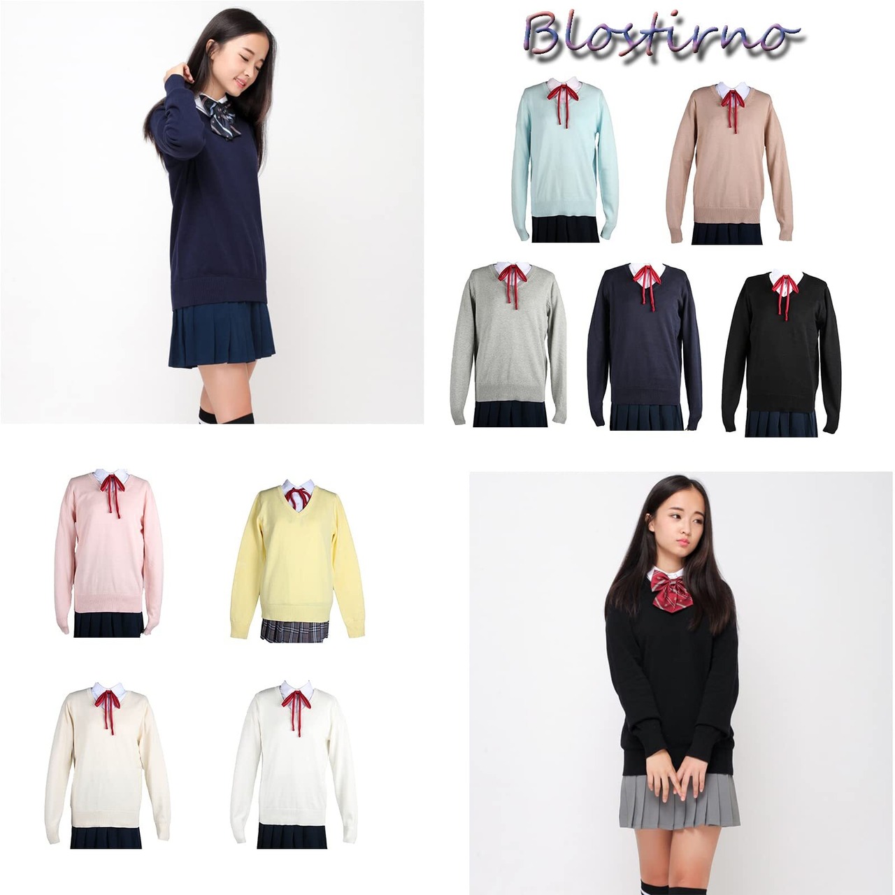 【人気商品】[Blostirno] スクールセーター 女子 Vネック セーター 制服 学生 無地 綿 女子高校生