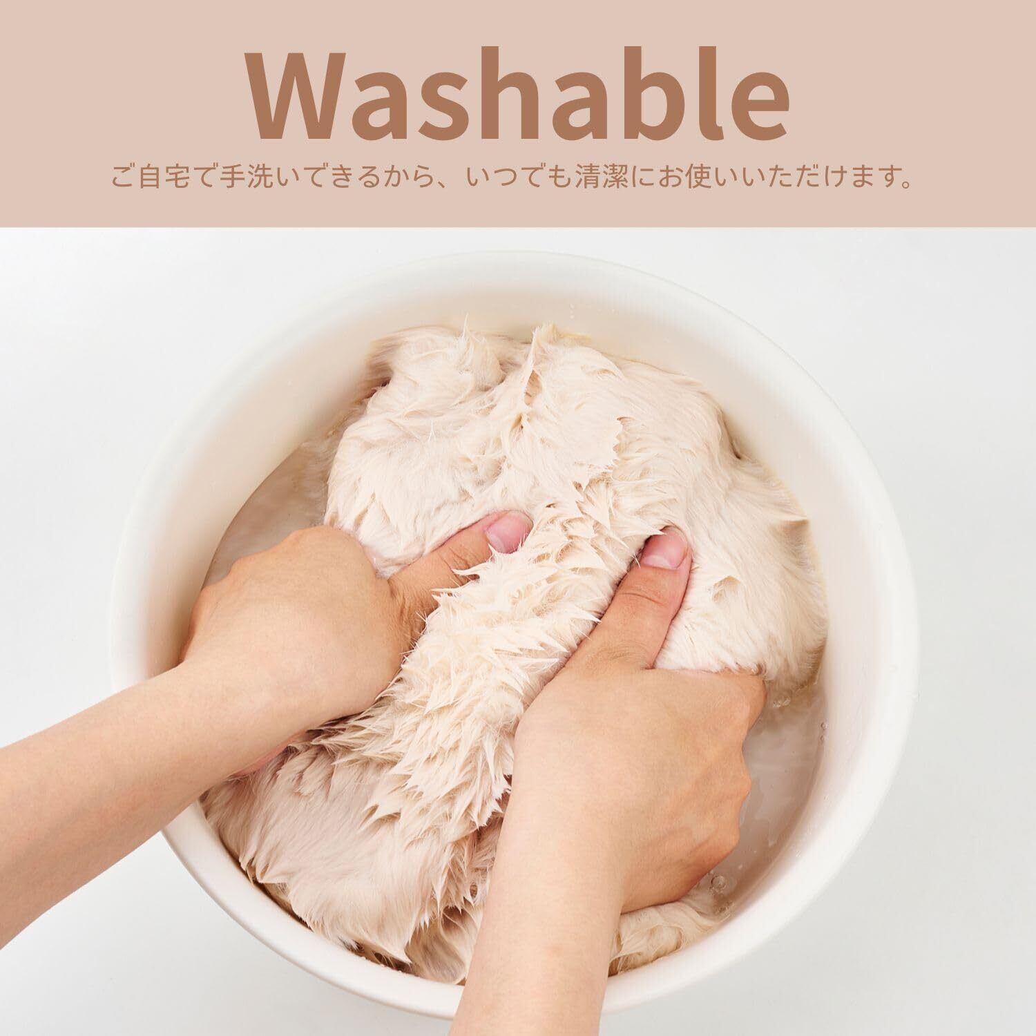 ふわふわ、もこもこな手触りがとても気持ち良い素材です。手洗いもできてお手入れ簡単。