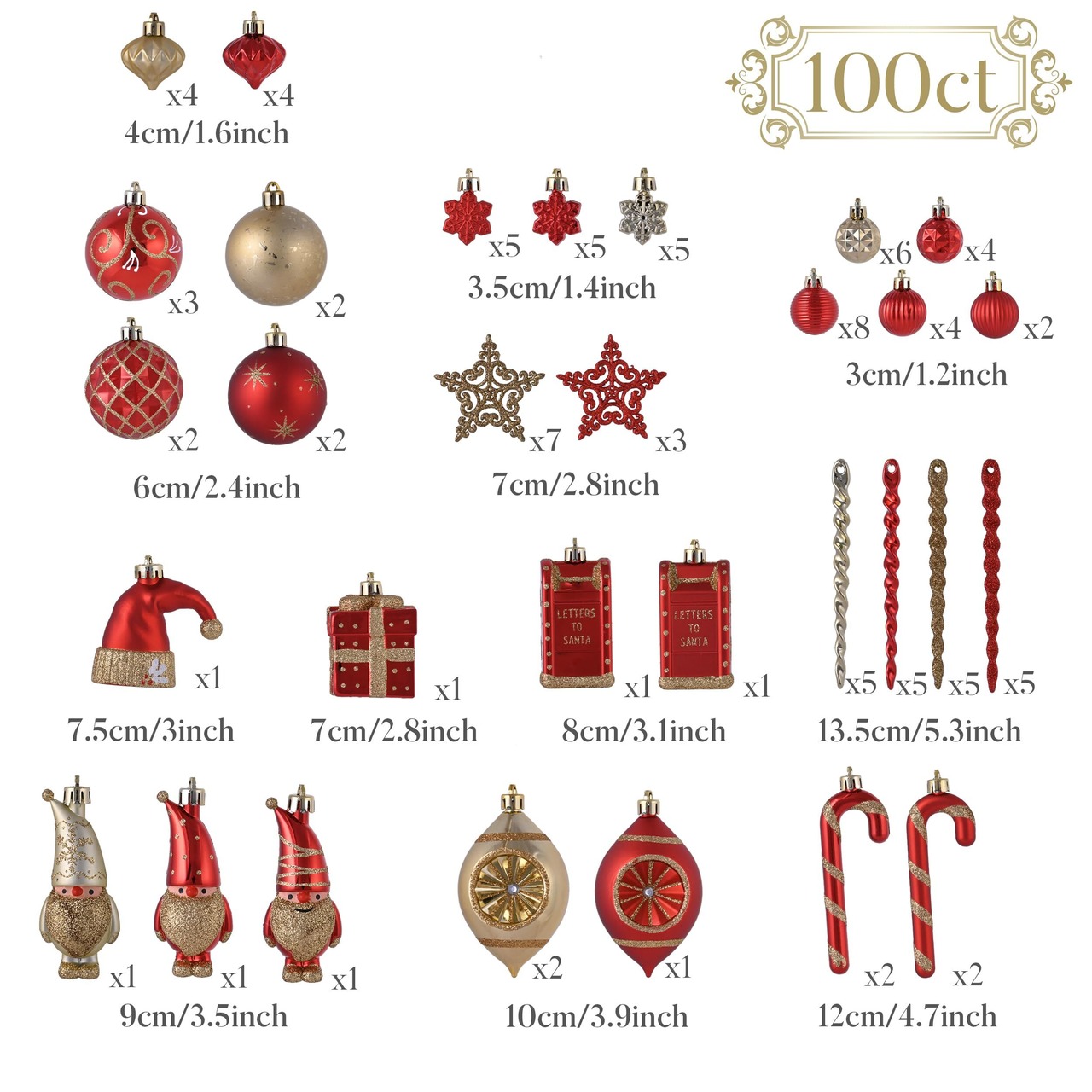 Valery Madelyn 北欧風 クリスマス ボール オーナメント 豪華 100個 セット ボールクリスマス ツリー 飾り 飾り付け おしゃれ ゴージャス レッド ゴールド 赤金