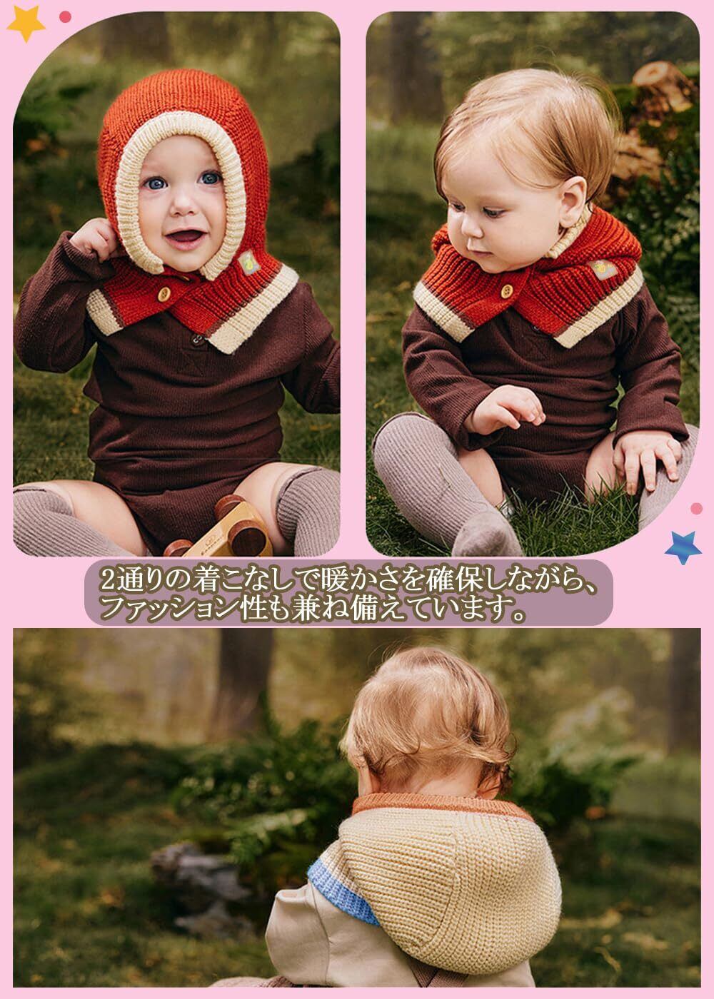 【柔らかくて暖かい生地】 帽子とマフラーが一体になったデザインなので、二重の暖かさ。これ一つで防寒対策OK! 当社の冬用帽子は帯電防止ポリエステルで作られています。赤ちゃんのデリケートな肌に直接触れられる生地です。内側と外側に豪華なデザインが冬にさらなる暖かさを提供します。