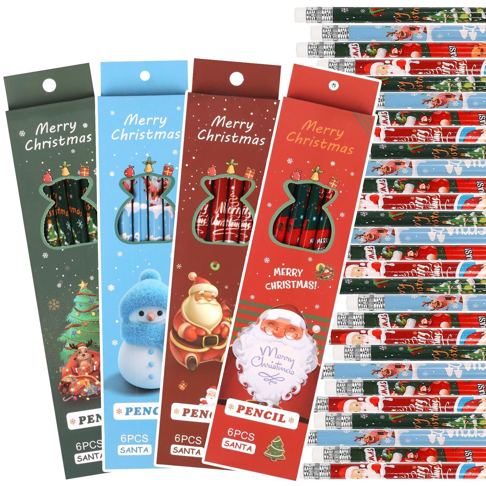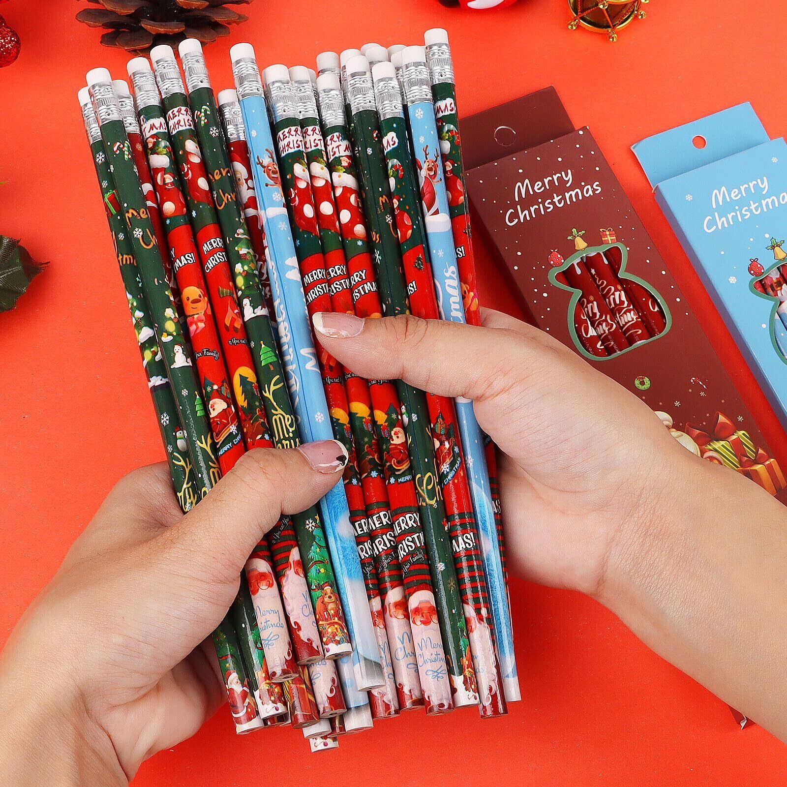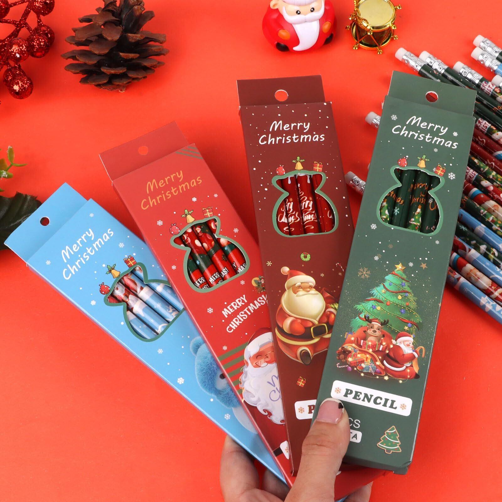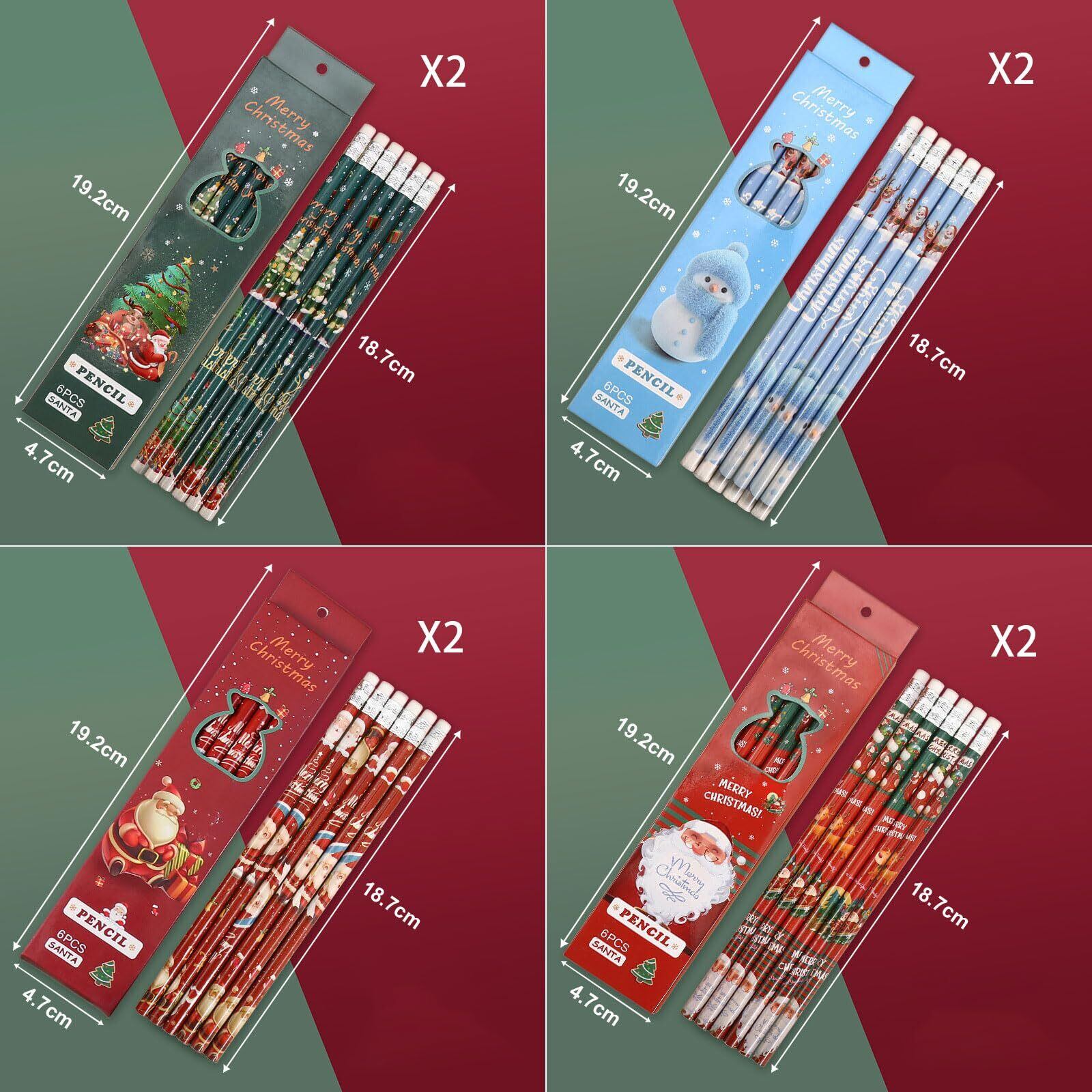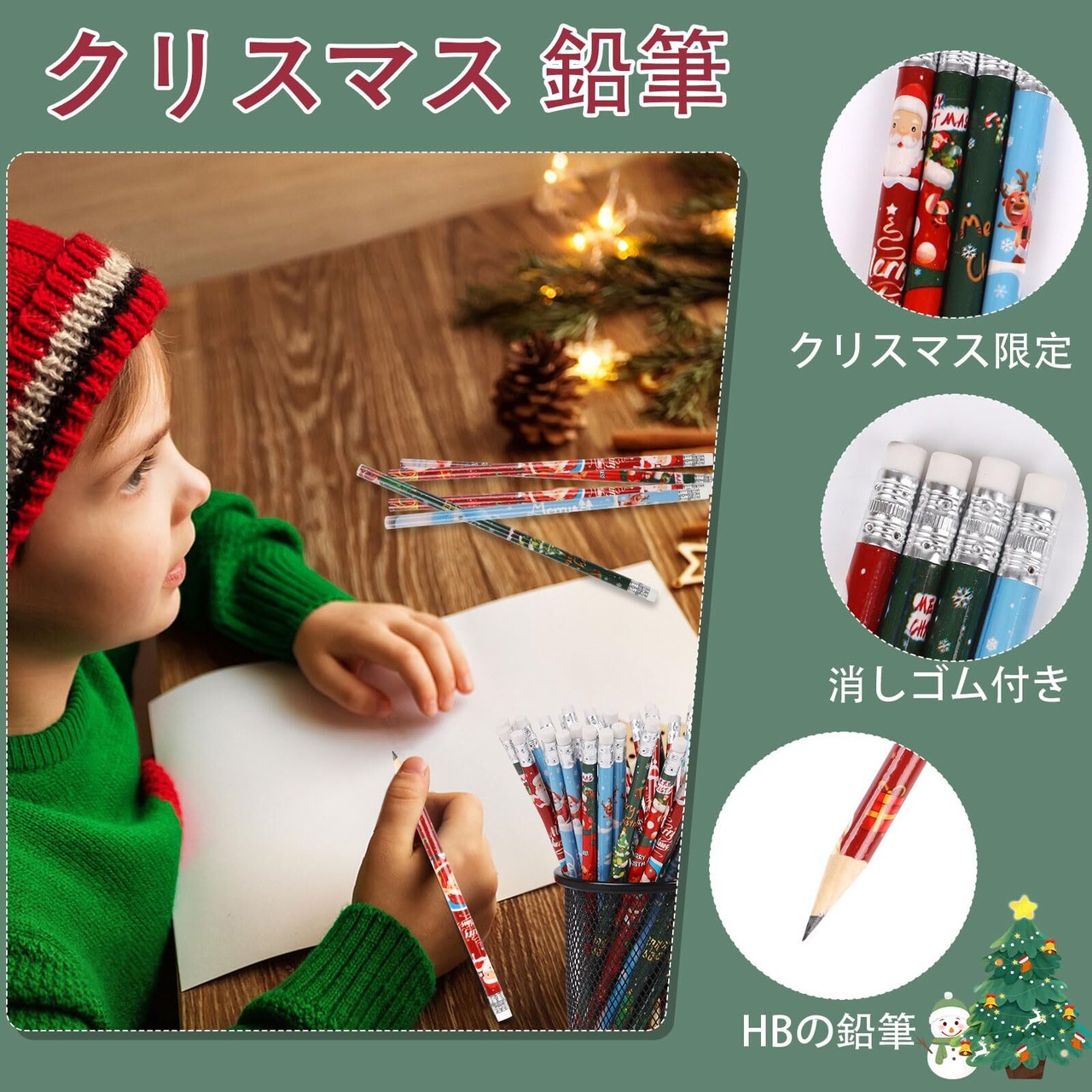 FINGOOO クリスマス 景品 鉛筆 えんぴつ 48本入・4種 教師用 ご褒美 可愛い HB 文房具 筆記具 プレゼント ギフト 学園祭 縁日 イベント お祭り (クリスマスB)