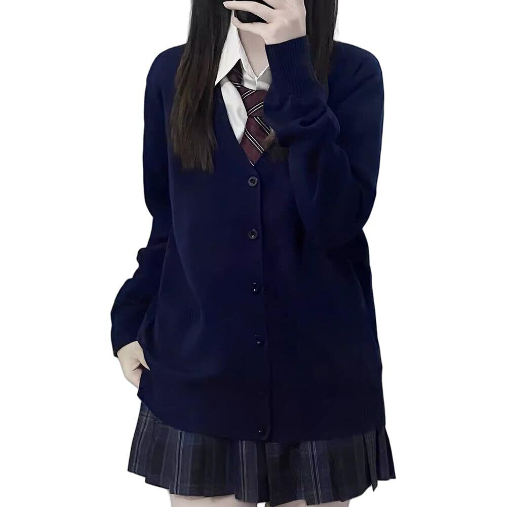 [HOTIAN] スクールカーディガン 女子 制服 Vネック スクールセーター 高校生 無地 ニットカーディガン 春 夏 秋 冬 通年 通学 通勤 春秋冬