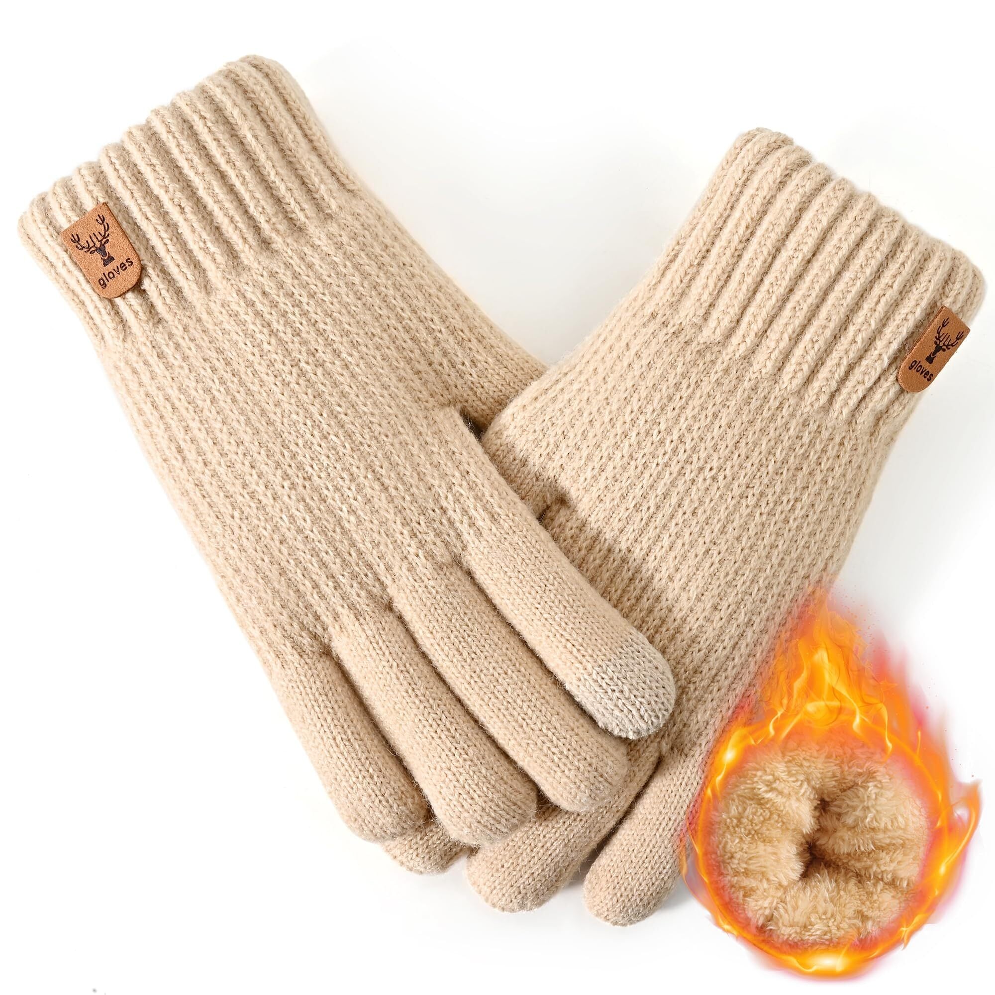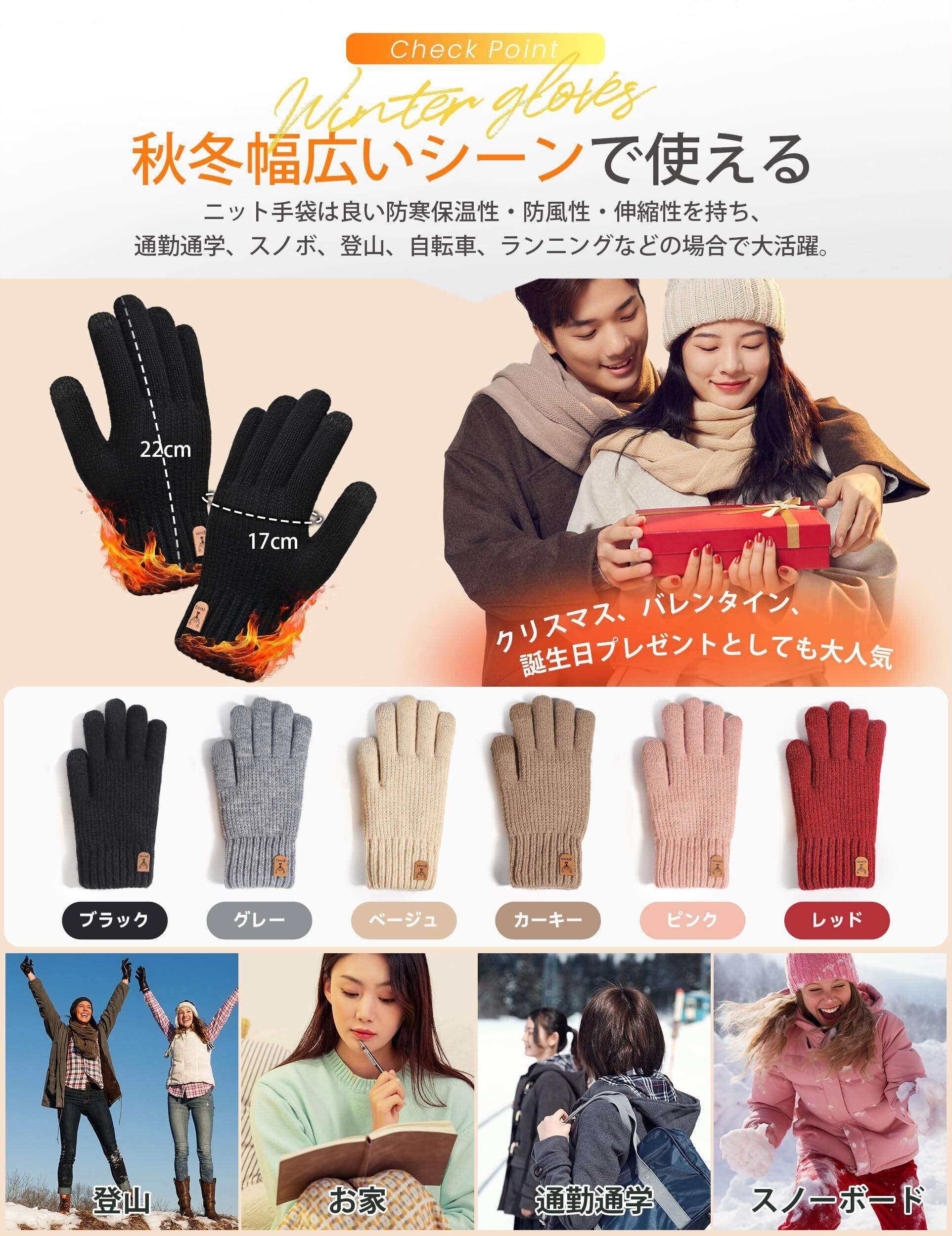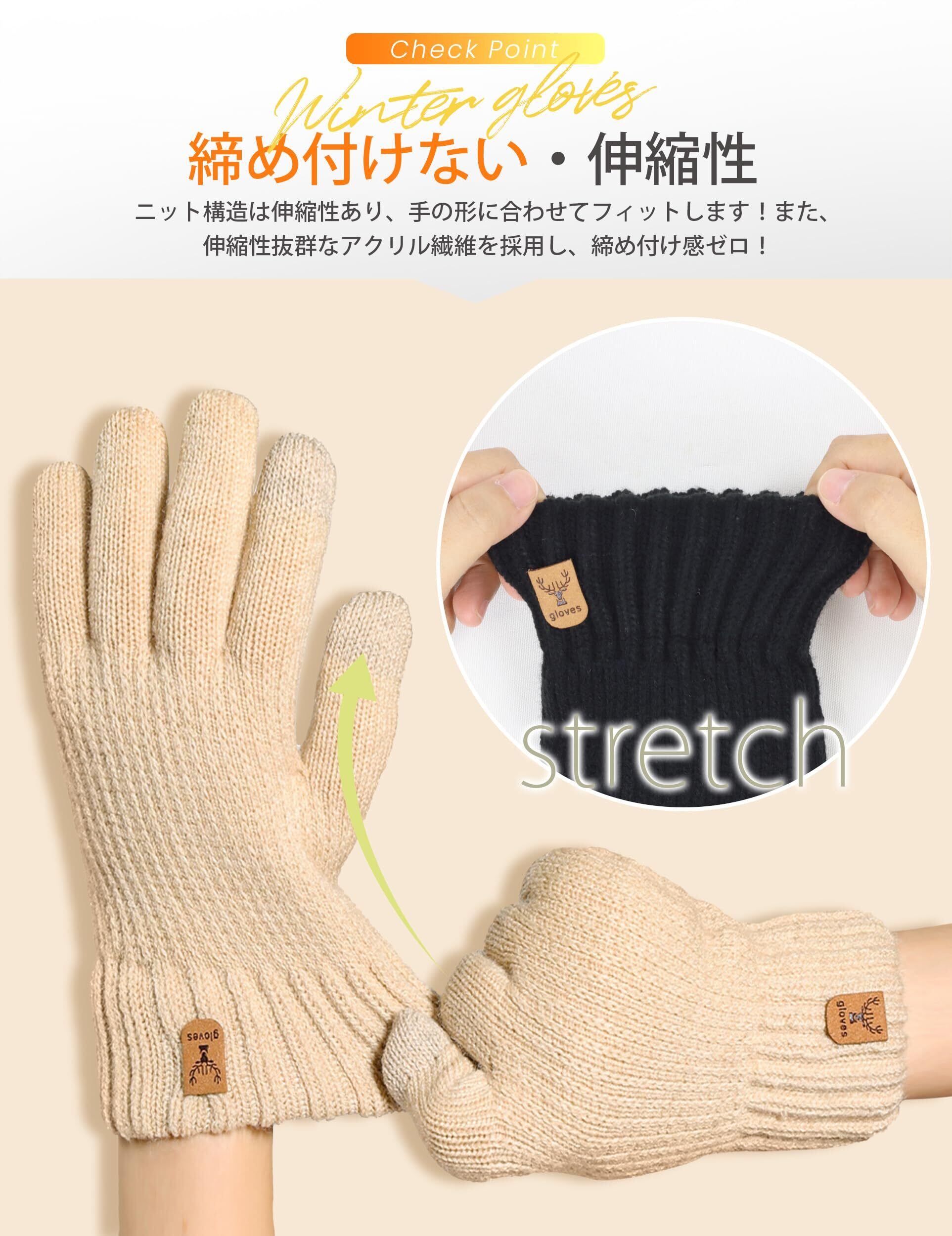 [SLEEPSINERO] レディース スマホ対応 冬 手袋 【指先まで裏起毛・360°蓄熱】 防寒 暖かい 保温 ふわふわ 厚手 防風 伸縮 柔らかい おしゃれ スマホ対応 ニット てぶくろ