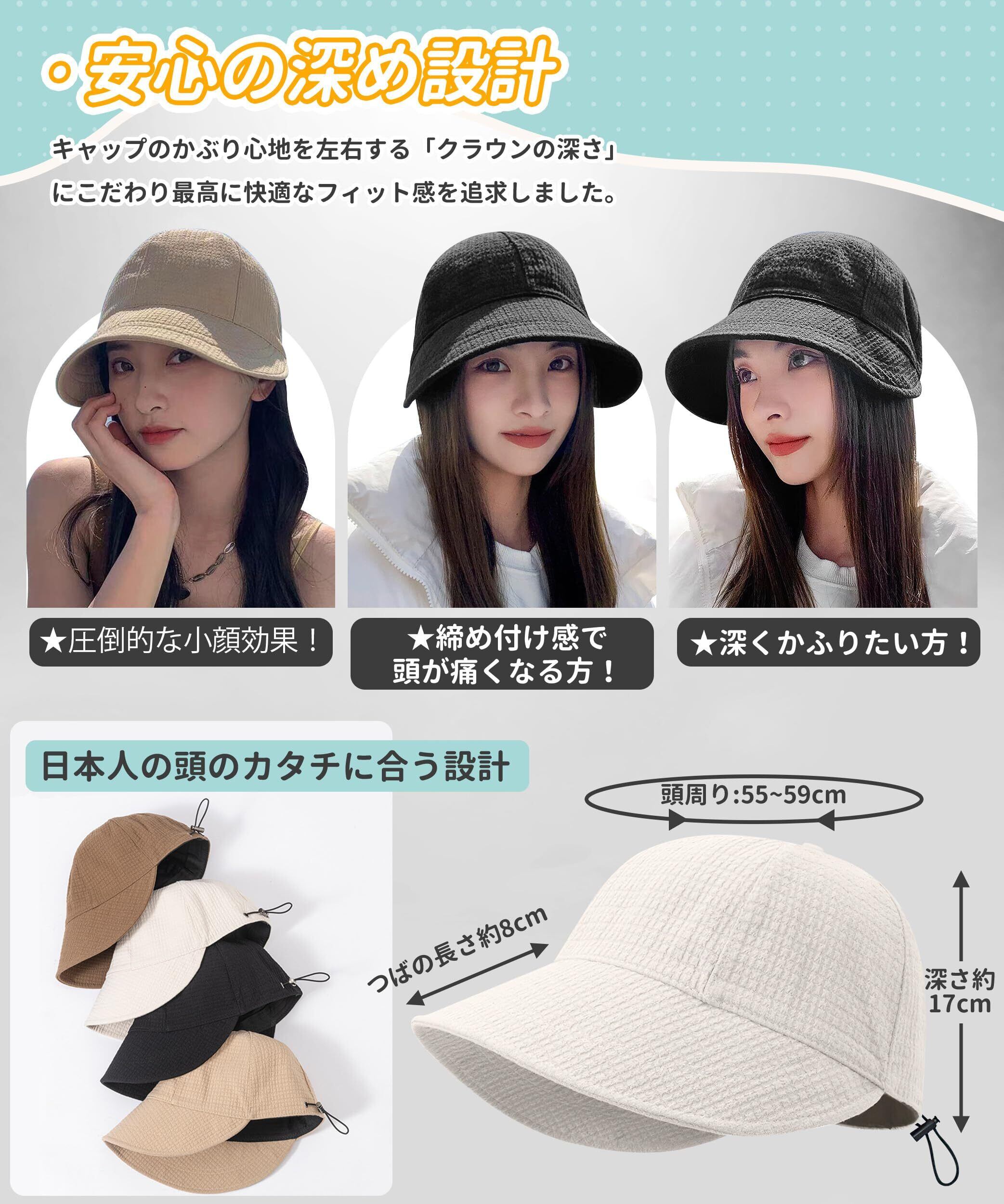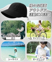 【大きなツバが前方に広がっている・小顔効果】この帽子は大きなツバが前方に広がっている設定になっていますので、前、側からも顔が小さく見える!帽子は約7cmの長めのツバ設計で頭皮から顔回りまで紫外線をしっかりガード。360°から光を遮断しできます。ポリエステルなのでさらっとして優しい肌ざわり。夏は紫外線/熱中症対策として、冬は防寒対策として、オールシーズン使えるマストアイテムです。