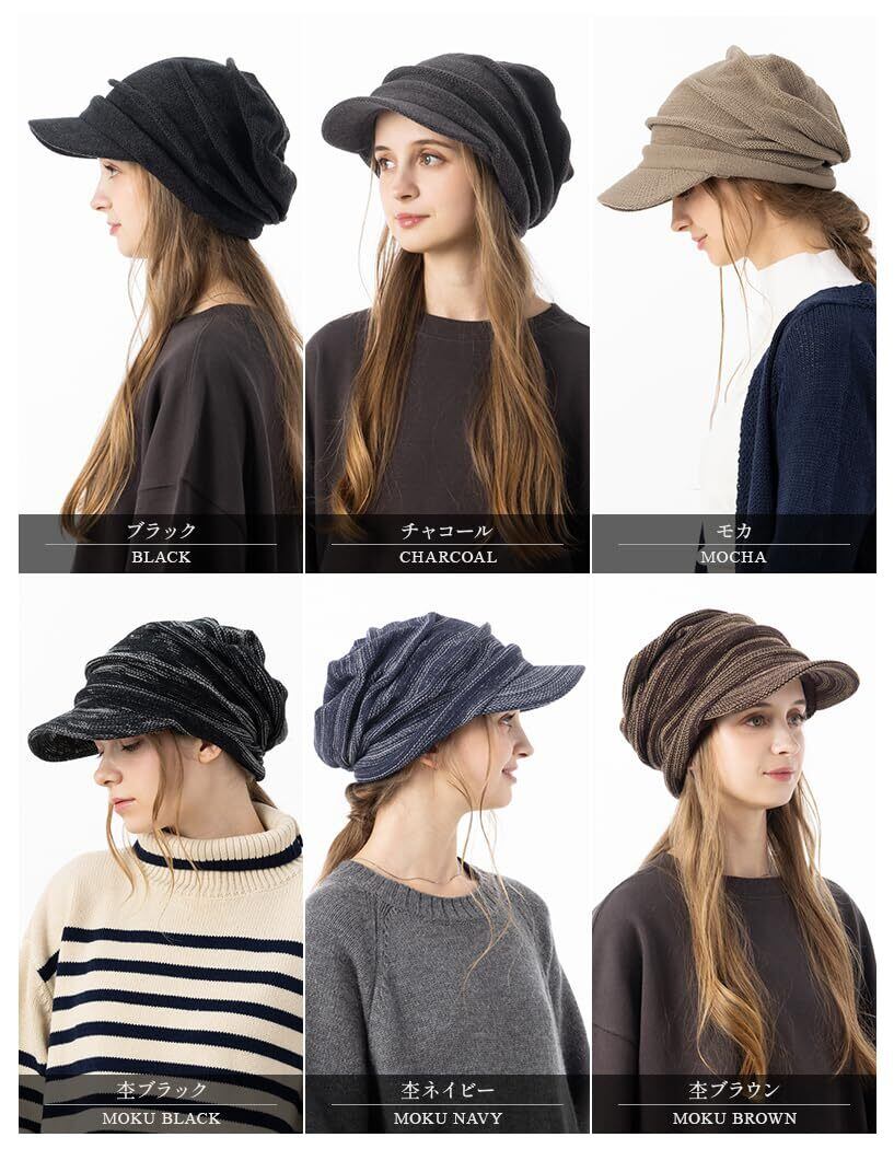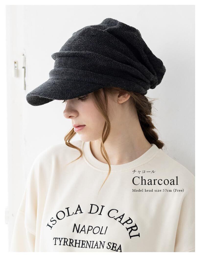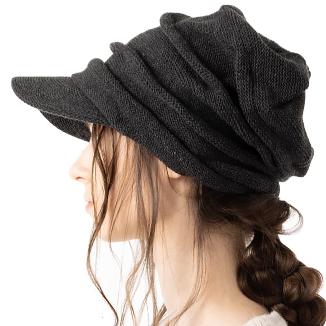 [Loo&c] 帽子 つば付き ニット帽 リンクルニットキャスケット 大きいサイズ レディース ゆったりサイズ ワッチ ニットキャップ メンズ 防寒 耳あて