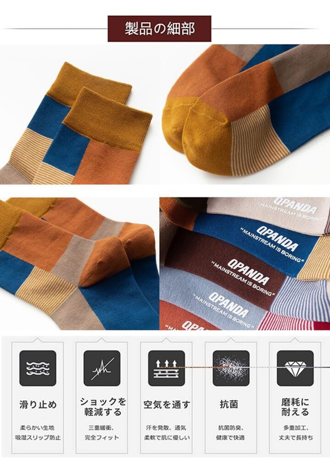 [QPANDA] 靴下 メンズ【抗菌 防臭 綿 】 薄手 スポーツソックス 吸汗 5足セット 24-28cm カラフルソックス アウトドアソックス カジュアル