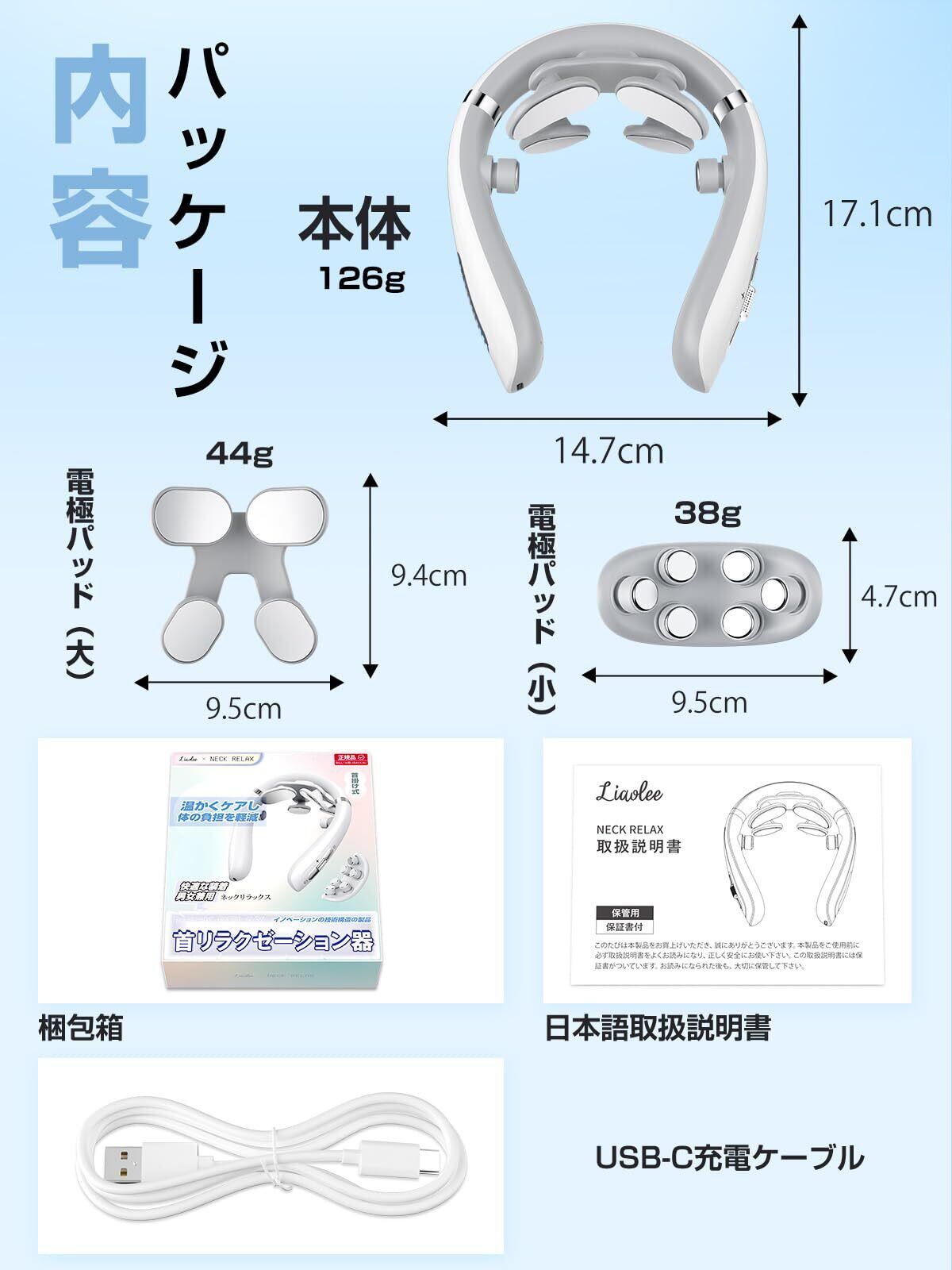 ネックケア 首 肩 リラクゼーション器 Liaolee 新傑作 母の日プレゼント EMS&TENS 振動 温熱 ネックリラックス 日本語音声ガイダンス コードレス 静音 軽量 温熱 10種類モード 16段階強度調節 USB-C充電 取り外せるマグネットパッド リラックスグッズ 父の日 母の日 記念日 誕生日プレゼント お祝い 男女兼用 日本語説明書を同梱