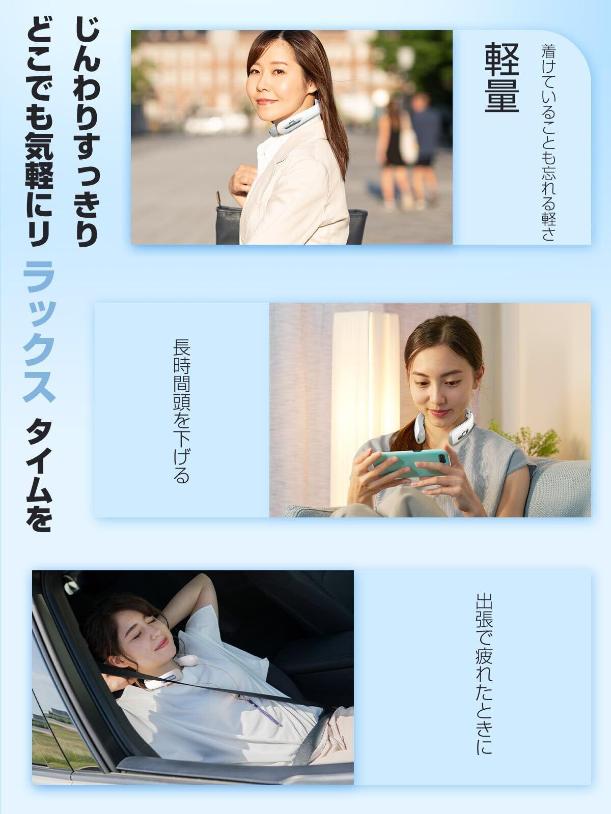 【男女兼用&ギフトにも最適】こちらの首元リラクゼーション機器は伸縮性に優れた設計で、装着感を大幅に高めているため、男性でも女性でも快適にお使いいただけます。コードレスなので、自由に持ち運んだり、外出先で掛けたり、バッグに入れたりすることができます。いつでも手軽に疲れを取りたい方におすすめです。また、大切な方へのギフトとしても最適です。