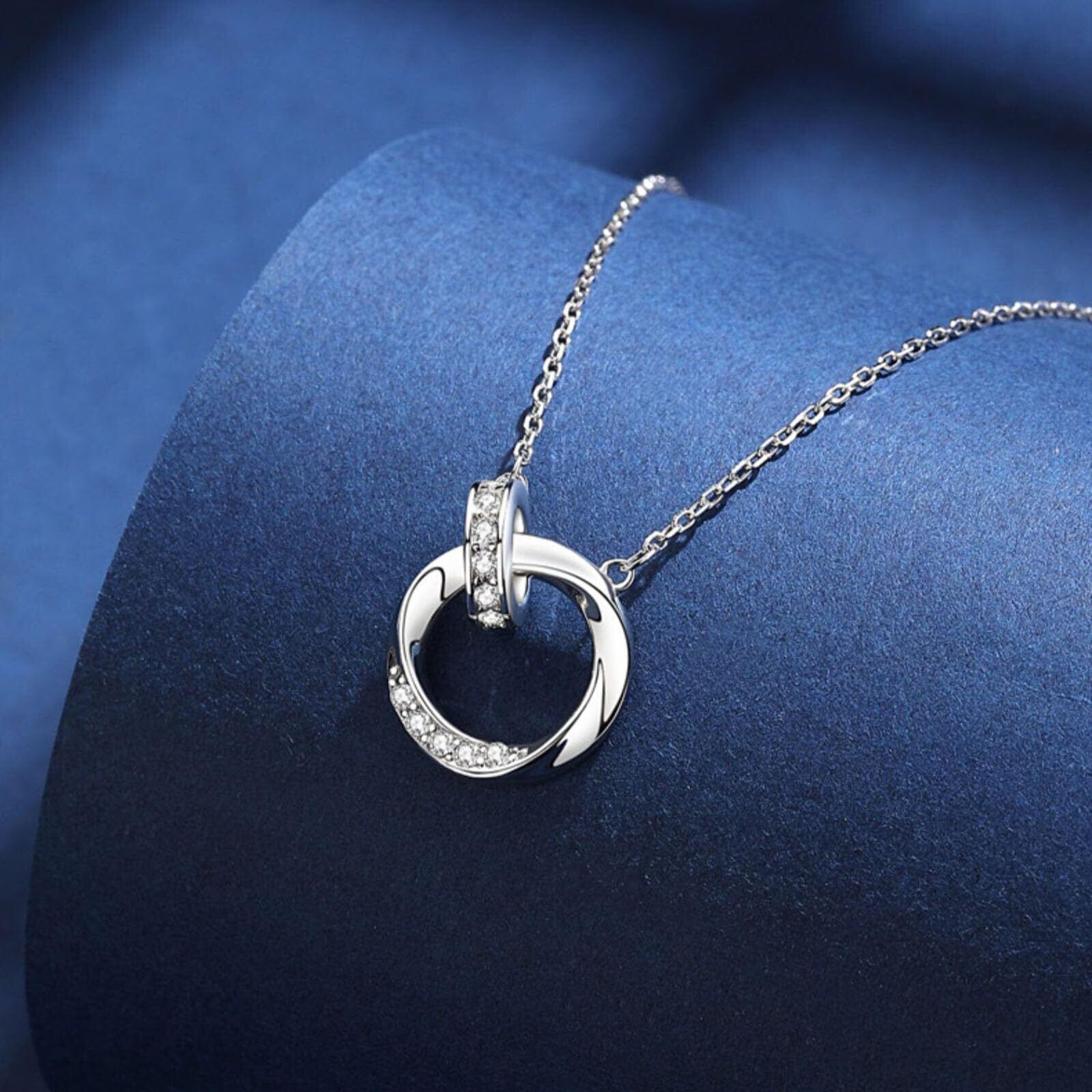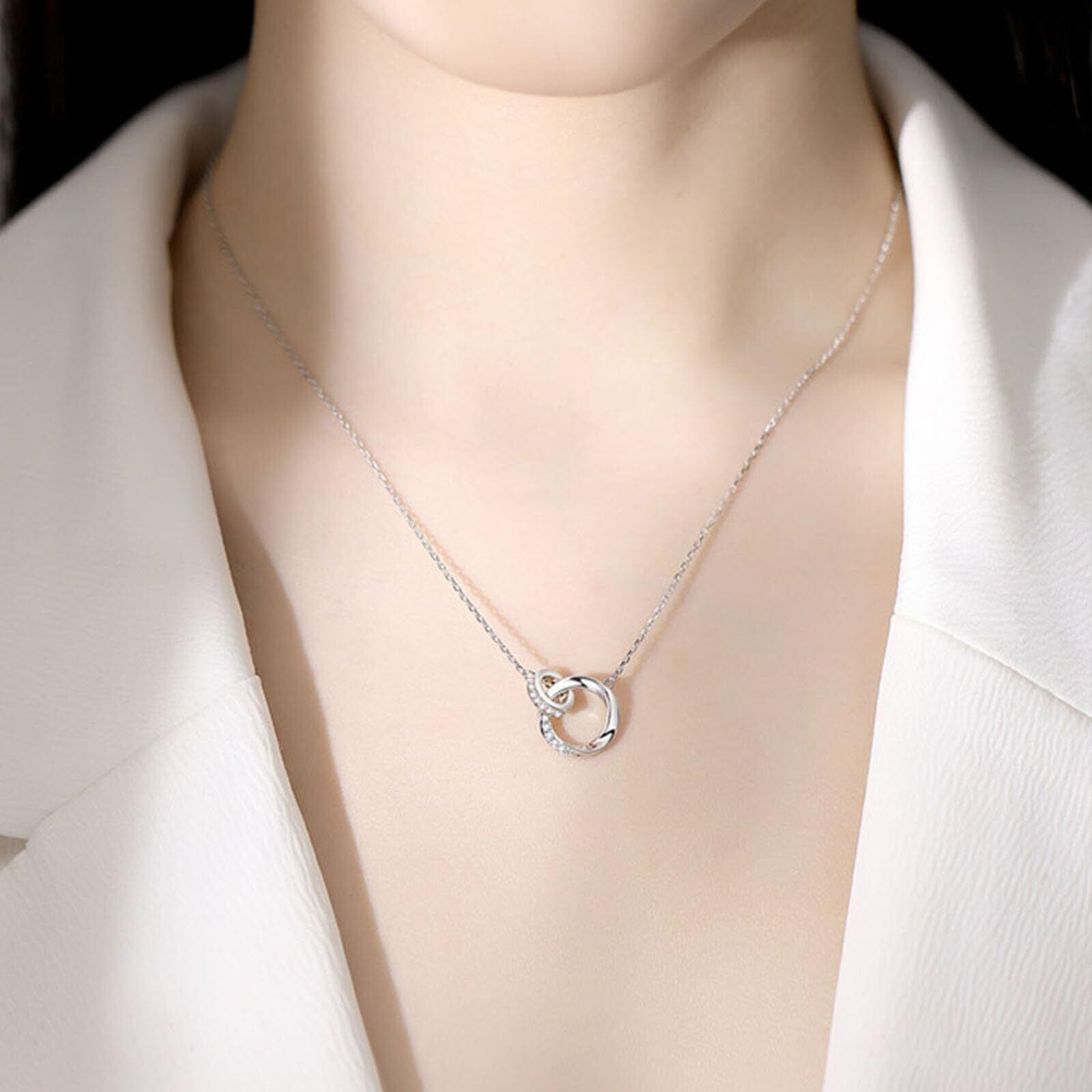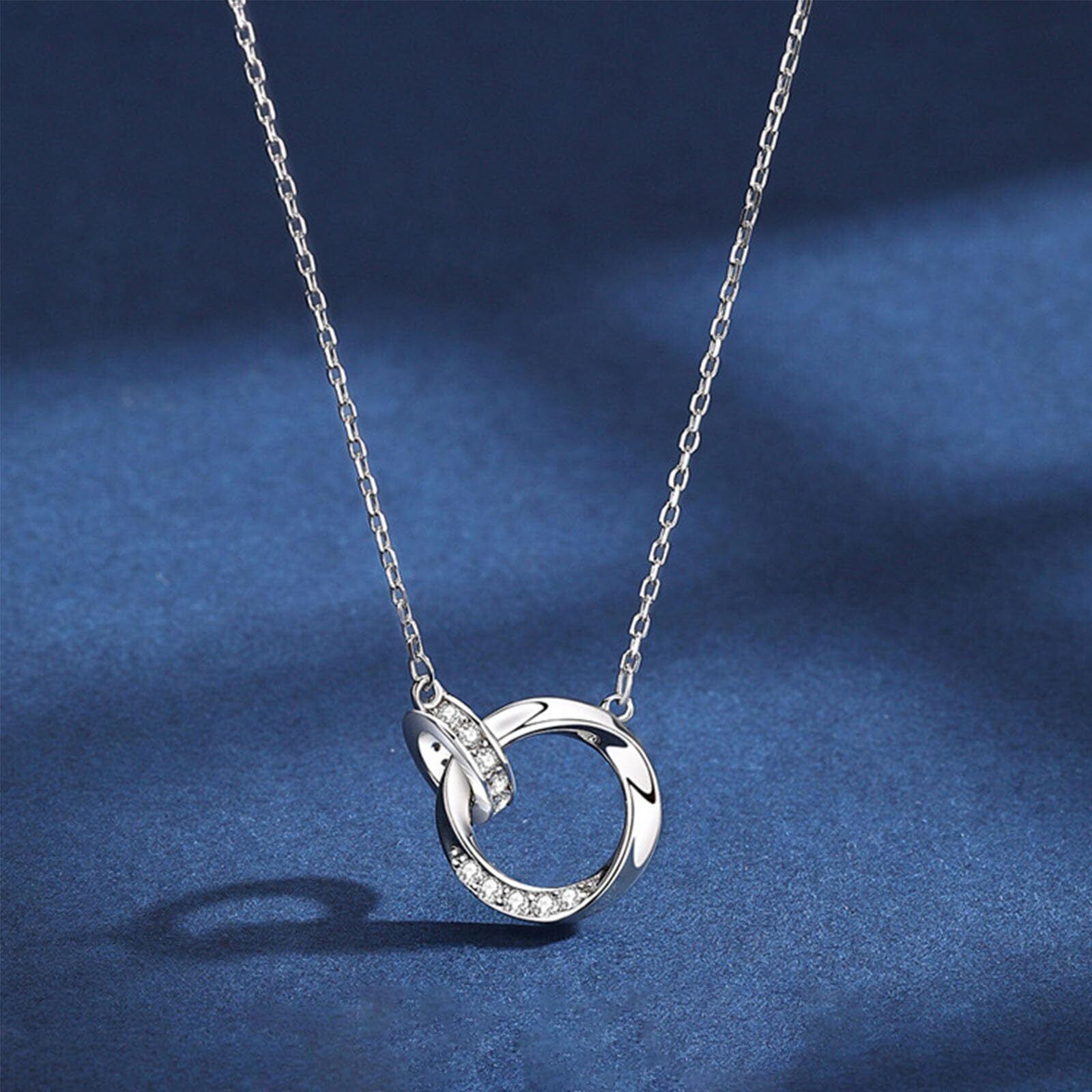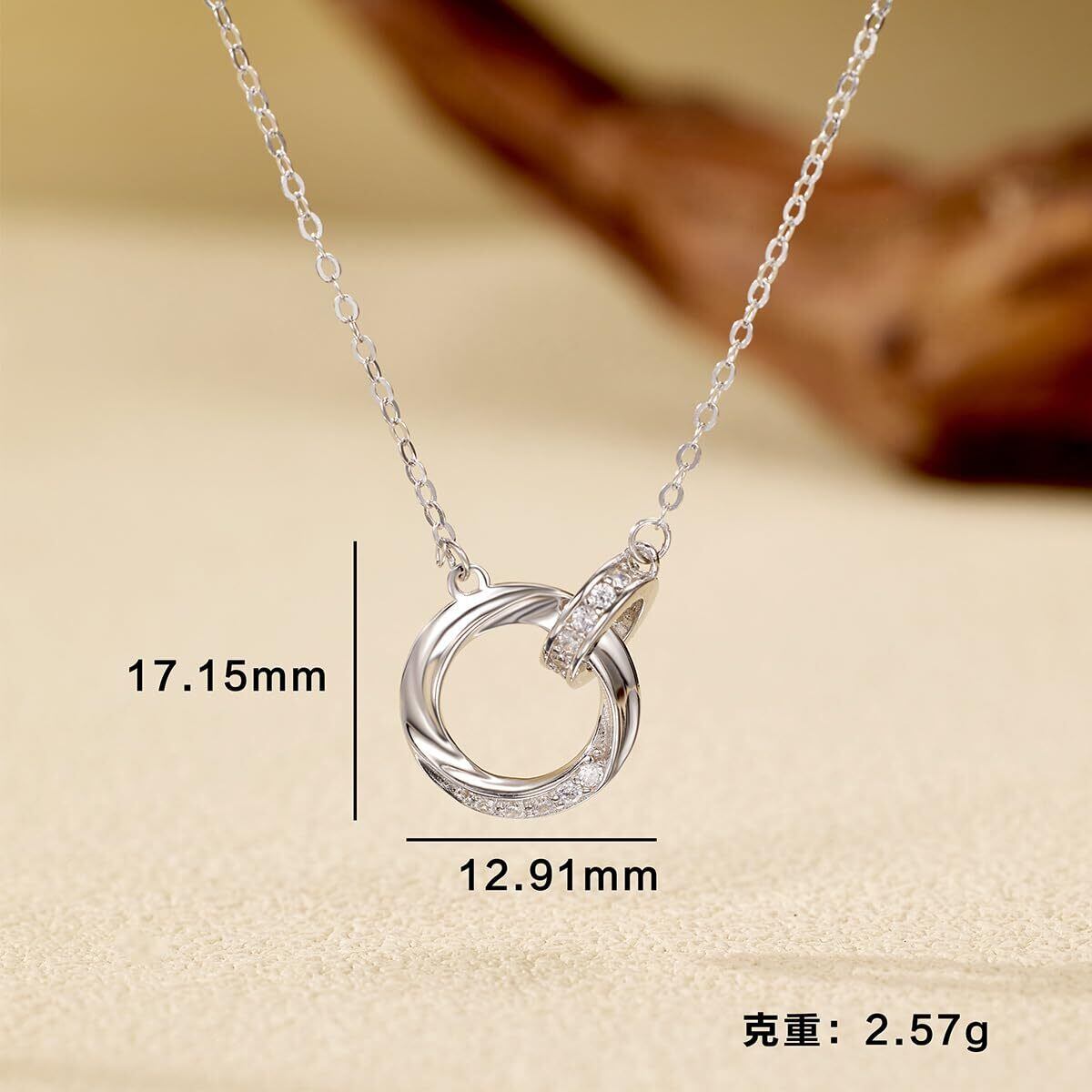 ペンダントネックレス:ネックレスは2つの円で構成され、1つは無限の愛と永遠の約束を象徴する「メビウスリング」、もう1つはきらきら光るジルコン、幸運、誠実、純潔と忠誠を意味し、愛と美の物語を共に綴ります。