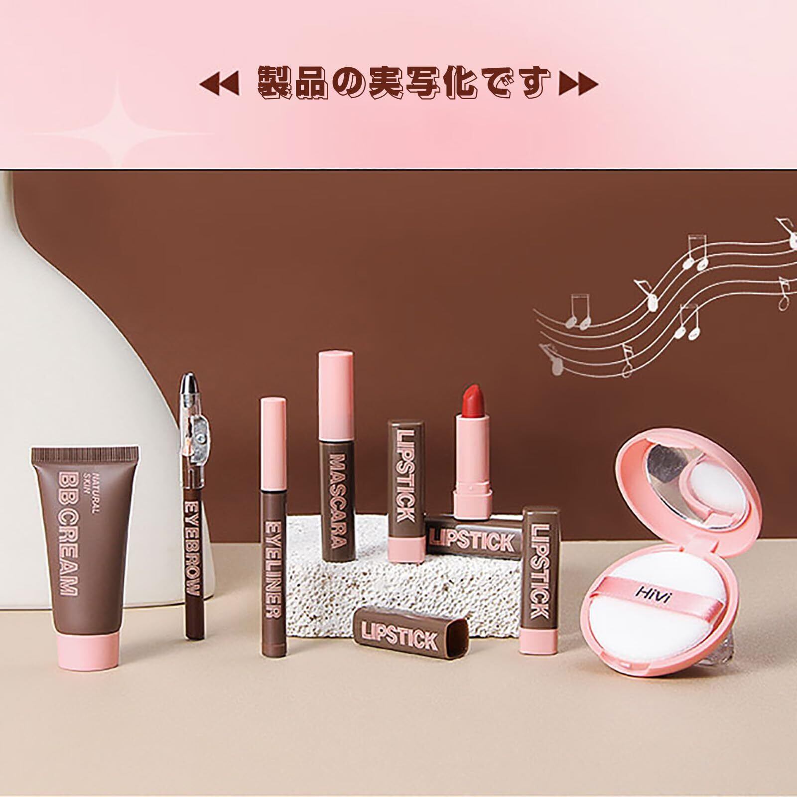 【新春セール】HiViメイクアップセット 化粧品セット 9点入り (ファンデーション×1 ,コンパクトパウダー×1,アイライナー×1, 眉ペン×1,マスカラ ×1,口紅×4)フル美容メイクアップ化粧品セット 長持ち メイクアップセット 初心者 人気化粧品セット クリスマス 新年 誕生日 お祝い日 贈り物