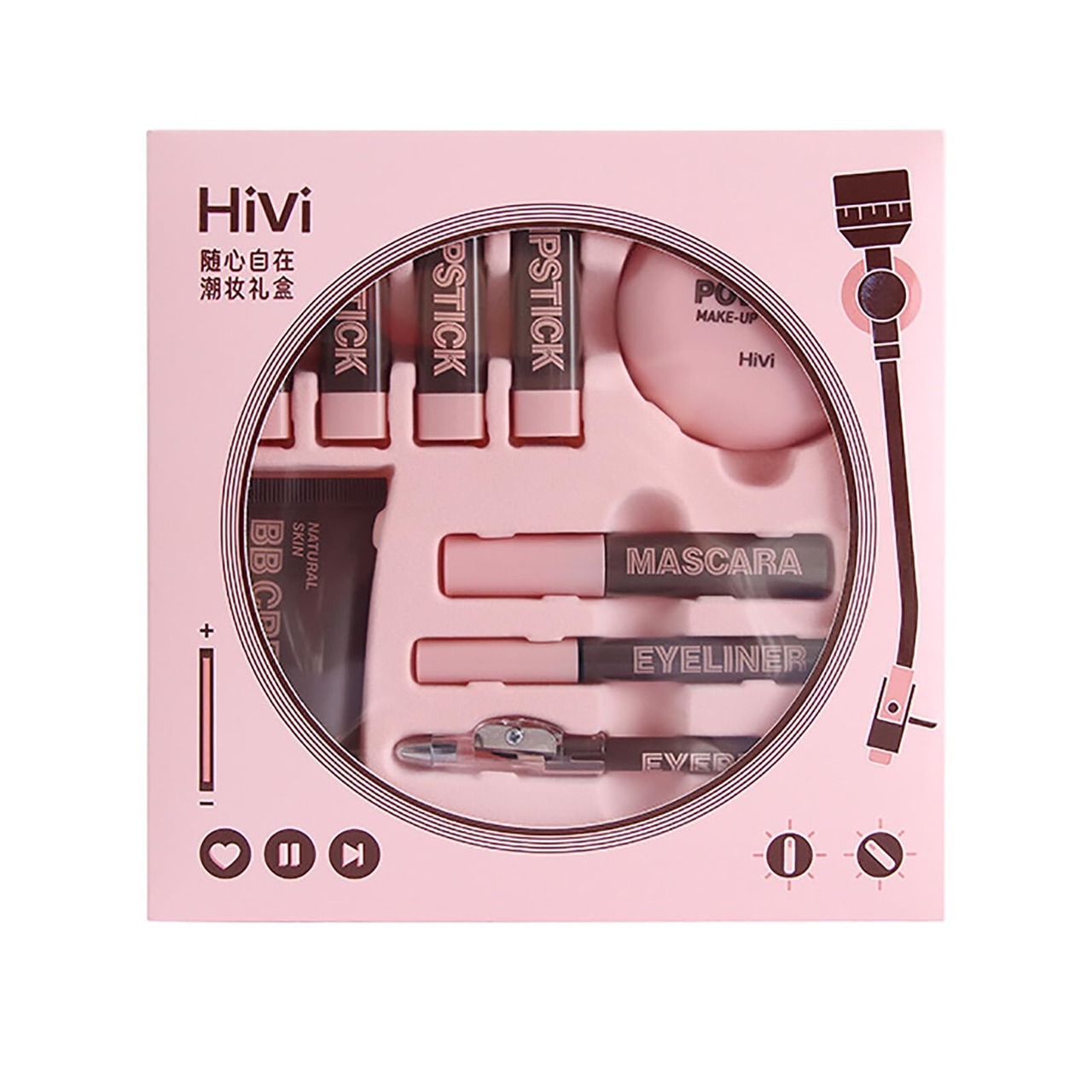 HiViメイクアップセット 化粧品セット 9点入り (ファンデーション×1 ,コンパクトパウダー×1,アイライナー×1, 眉ペン×1,マスカラ ×1,口紅×4)フル美容メイクアップ化粧品セット 長持ち メイクアップセット 初心者 人気化粧品セット クリスマス 新年 誕生日 お祝い日 贈り物