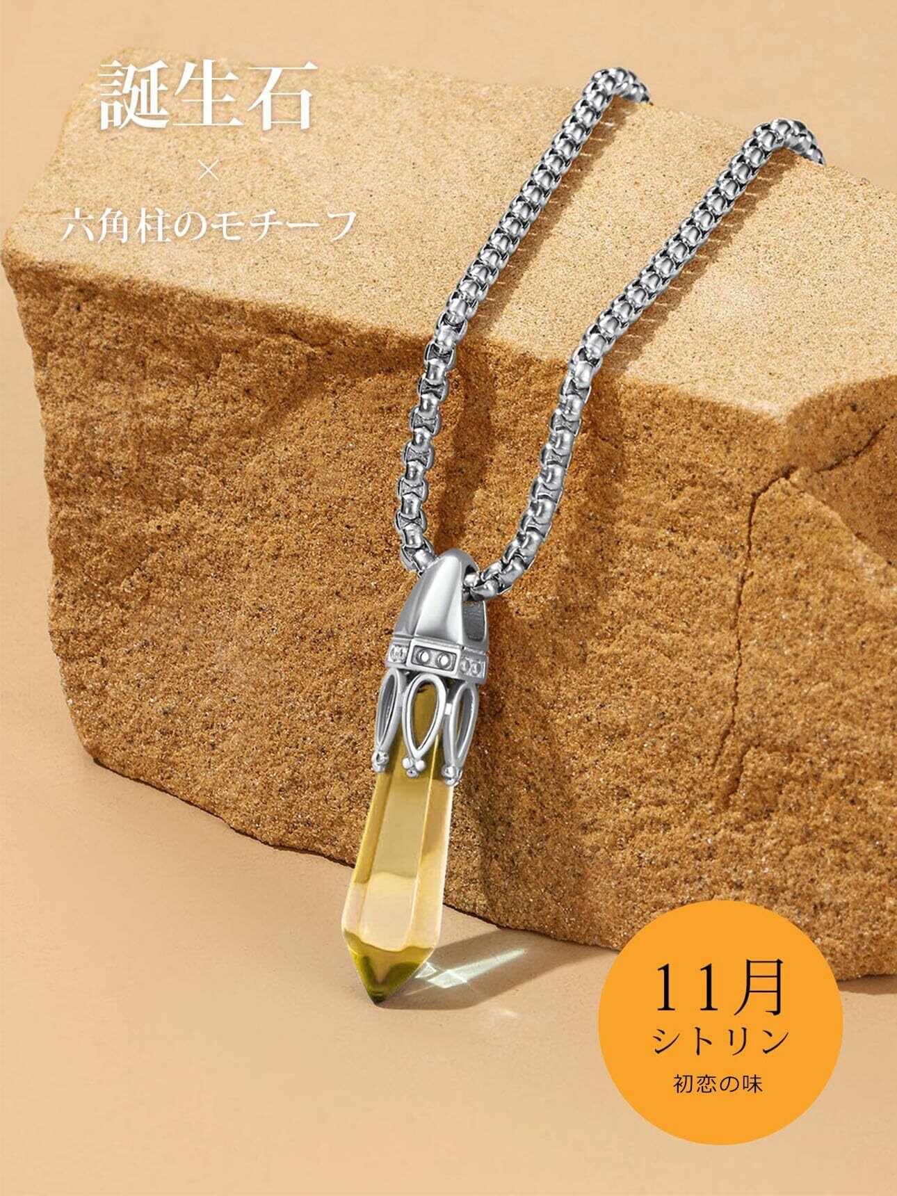 誕生石ネックレス:王冠と六角錐柱をかたどった造形が印象的柱モチーフで、シンプルでありながらも存在感があり、360度光を受けて煌めくデサゲインは、好きなで選ぶアミュレットジュエリーとししても人気があります。