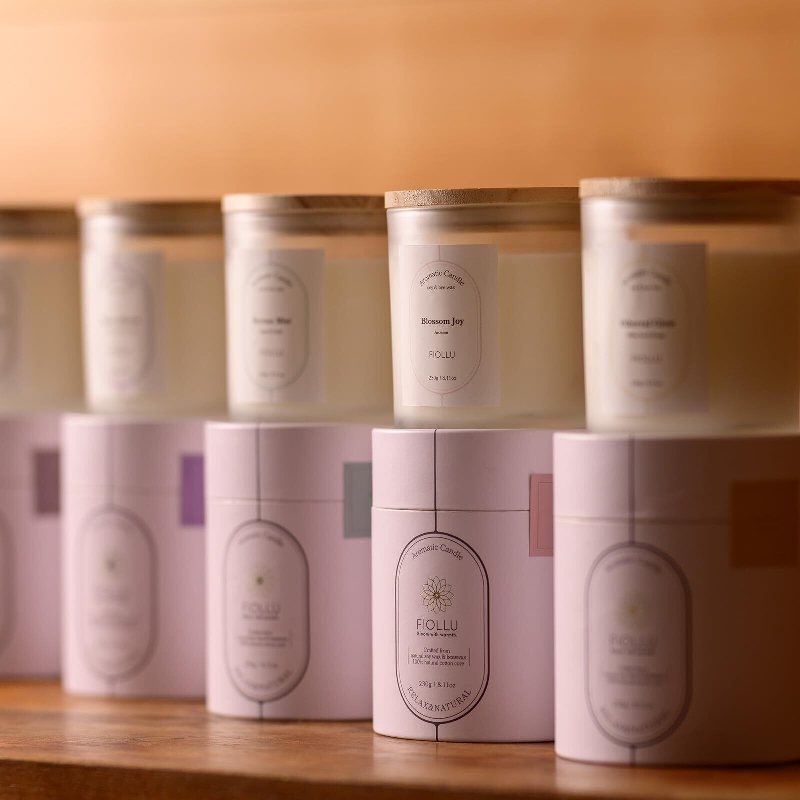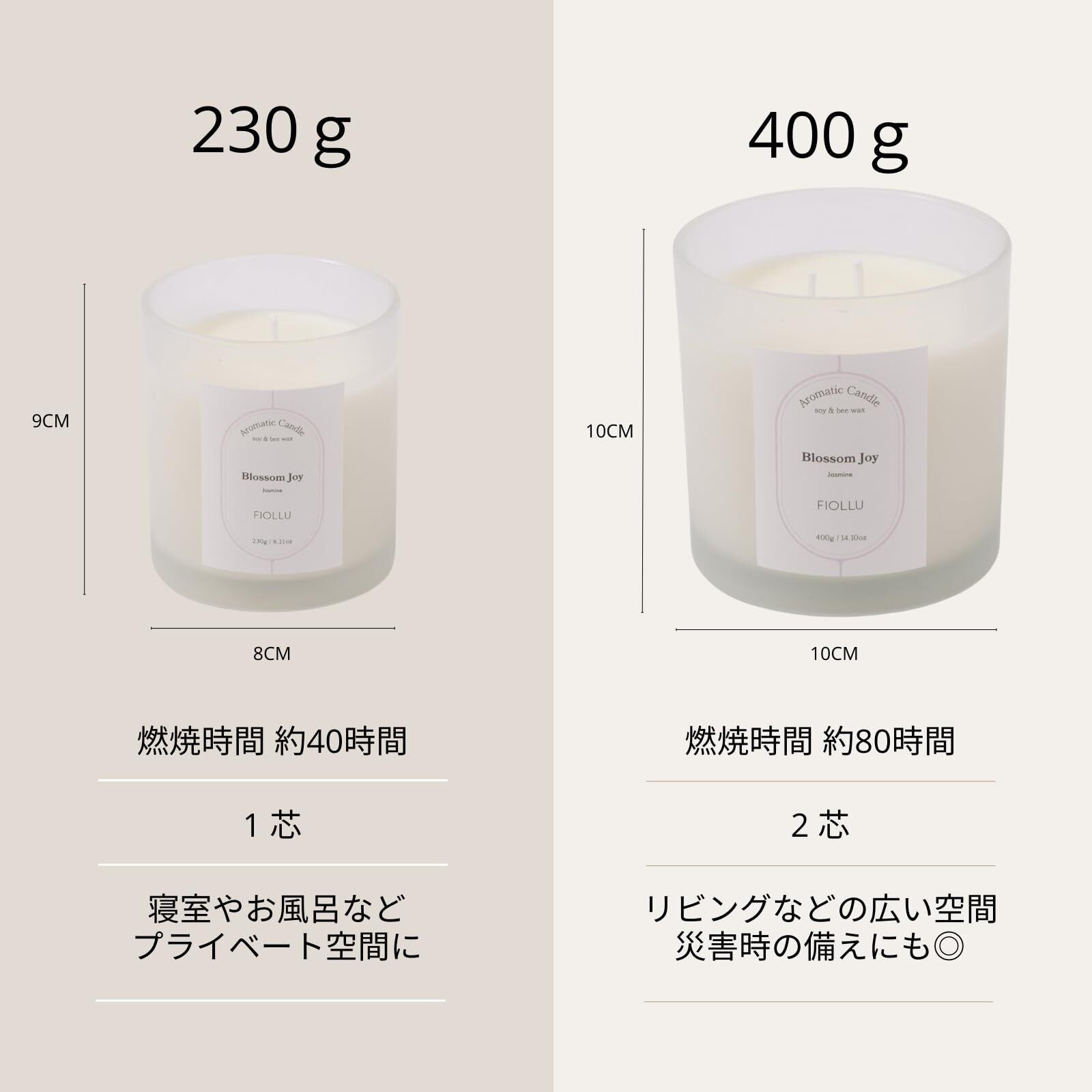 アロマキャンドル 燃焼約40時間 (ジャスミン)【アロマセラピスト監修】天然ソイワックス&蜜蝋 癒し 無煙綿芯230g ギフト Blossom Joy