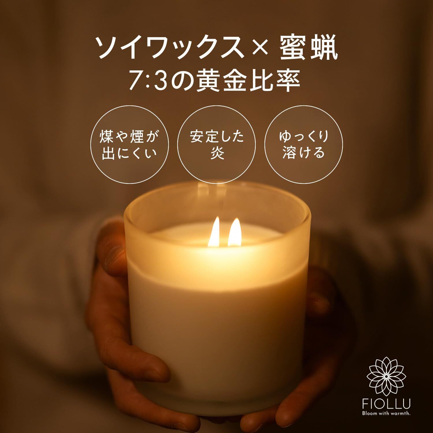 【100%自然素材使用】パラフィン・BPA・鉛フリー。天然ソイワックス70%+蜜蝋30%の黄金比で、ススや煙が少なく、安全で優しい使用感。