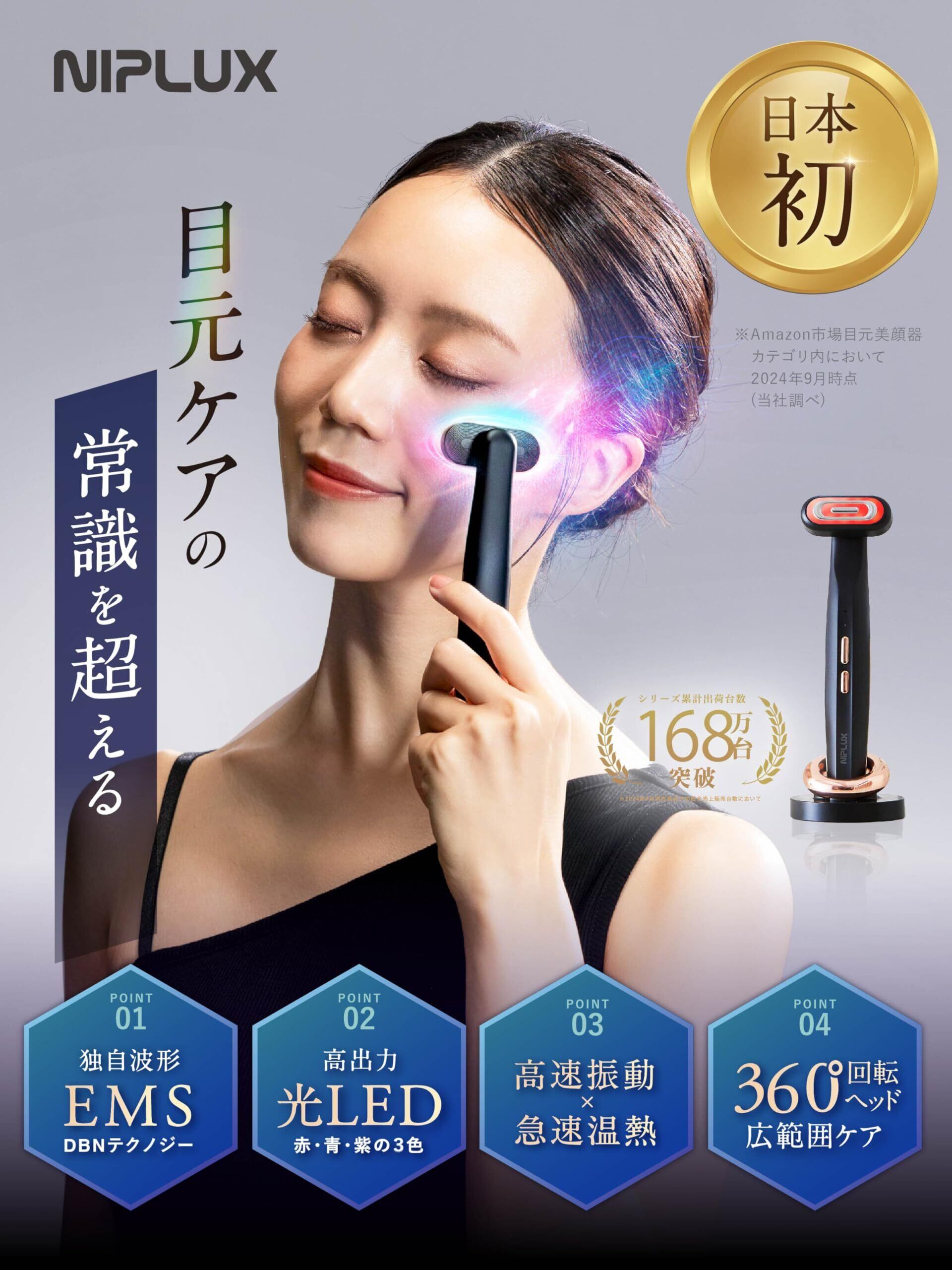 【数量限定】NIPLUX 目元 美顔器 EMS 三色光LED 振動 温熱 1台4役 リフトケア 目元ケア 小顔 電動 美容家電 美容グッズ REFINE EYE