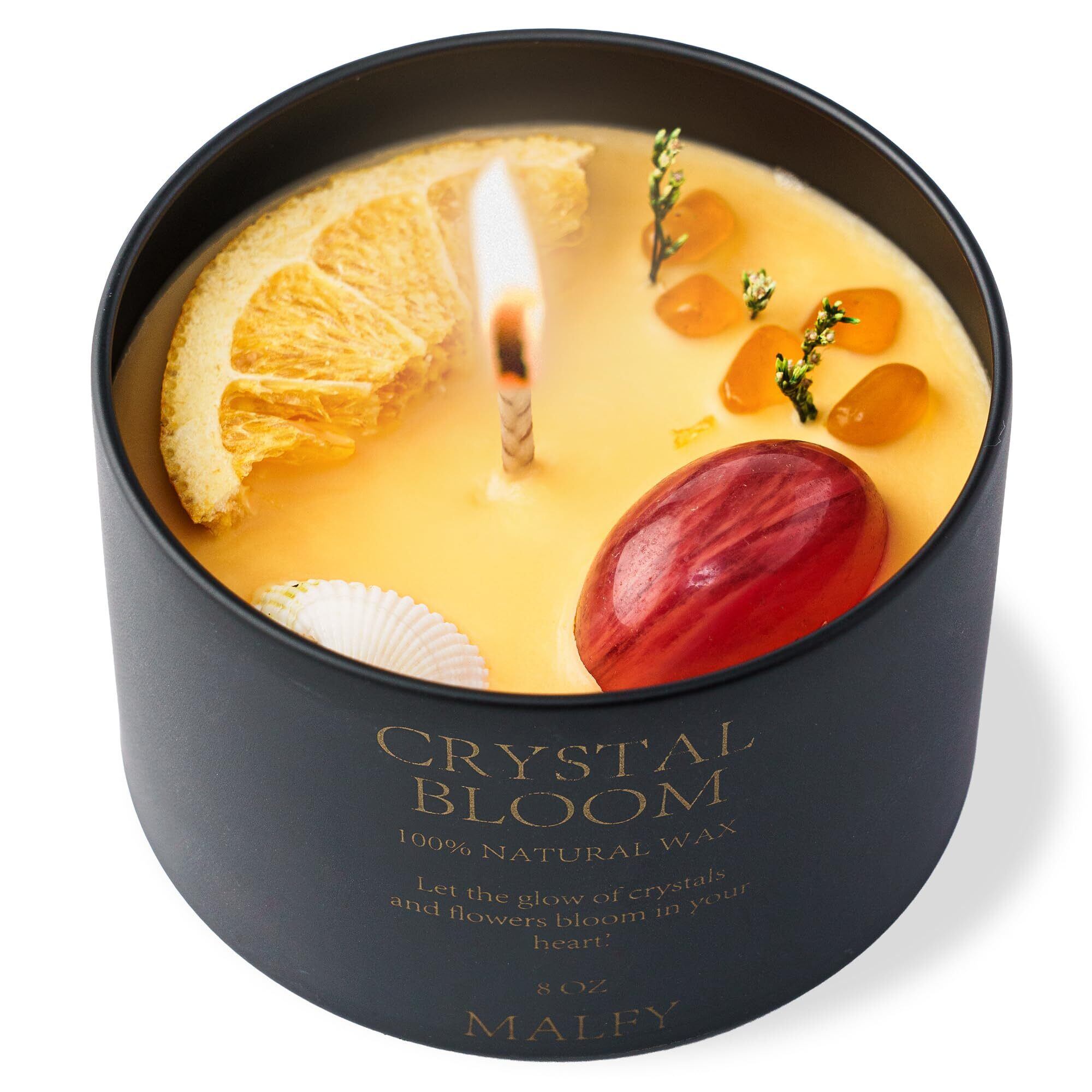 [MALFY] (癒し・浄化・自然)見た目も香りも、心を癒すアートアロマキャンドル 8オンス クリスタル ドライフラワー ソイワックス 【Crystal Bloom】 (ネロリベルガモット)