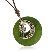【商品について】木製の輪にお日様とお月様そしてハートのチャームが可愛い革紐ロングネックレスです。スッキリとしたデザインでどんな服装にも合います。お出かけ時のワンポイントとしてお使いください。