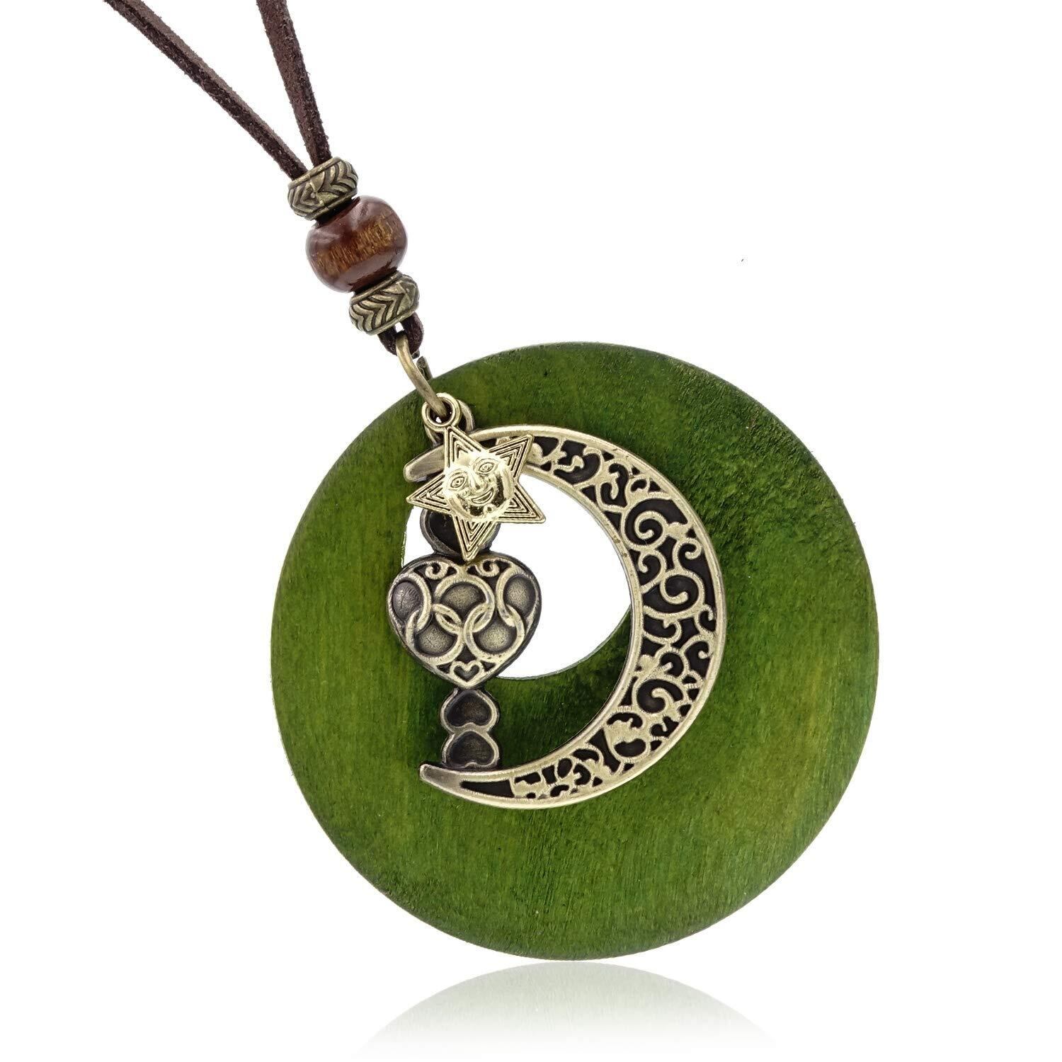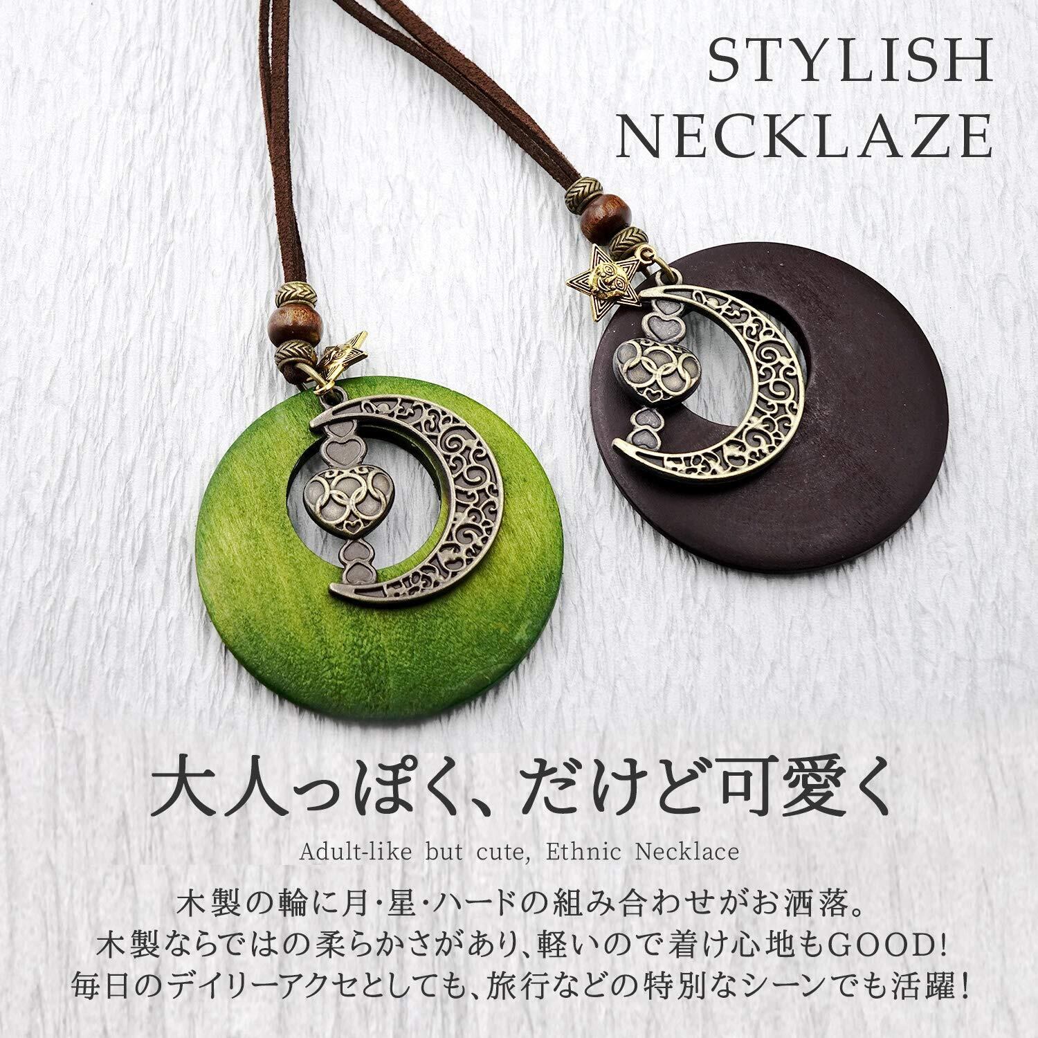 [ナピスト] ネックレス ロング エスニック 革紐 木製 お日様 と 月 レディース ブラウン NPN186