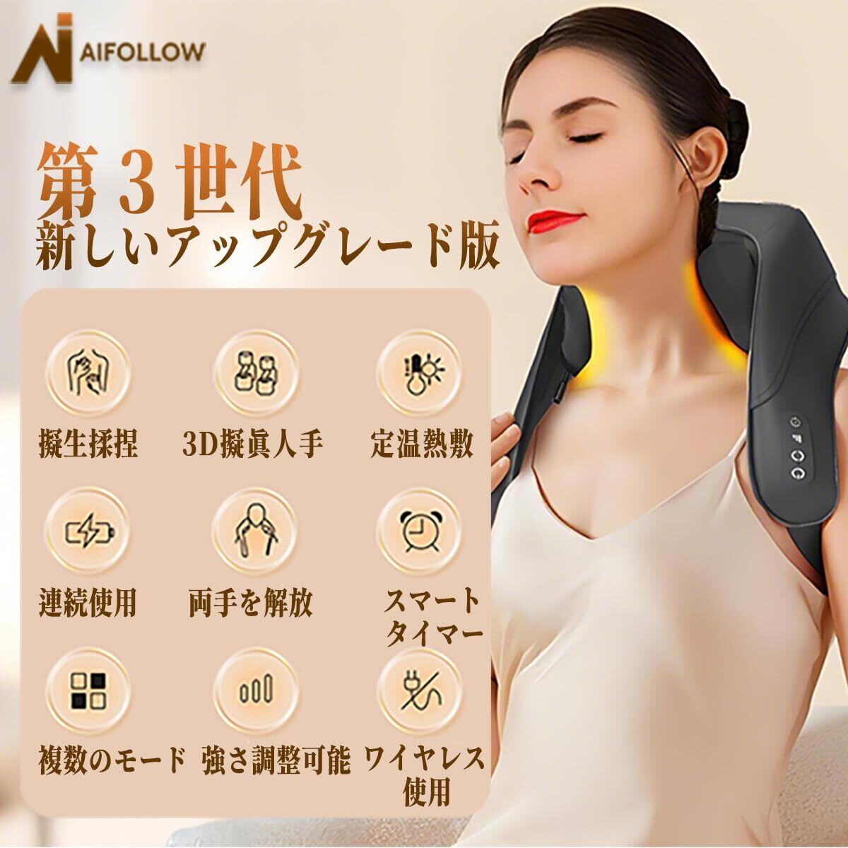 【特価商品】【新登場】AIFOLLOW ネックケア リラクゼーション器 首 肩 腰 背中 太もも リラクゼーション器 ヒーター温熱機能付き コードレス USB充電式 強度調節 静音 軽量 長さ調節可能 洗える布カバー 簡単操作 母の日 父の日 記念日 誕生日 新年 プレゼント クリスマス お祝い 家庭用 職場用 ギフト 贈り物 男女兼用 日本語説明書