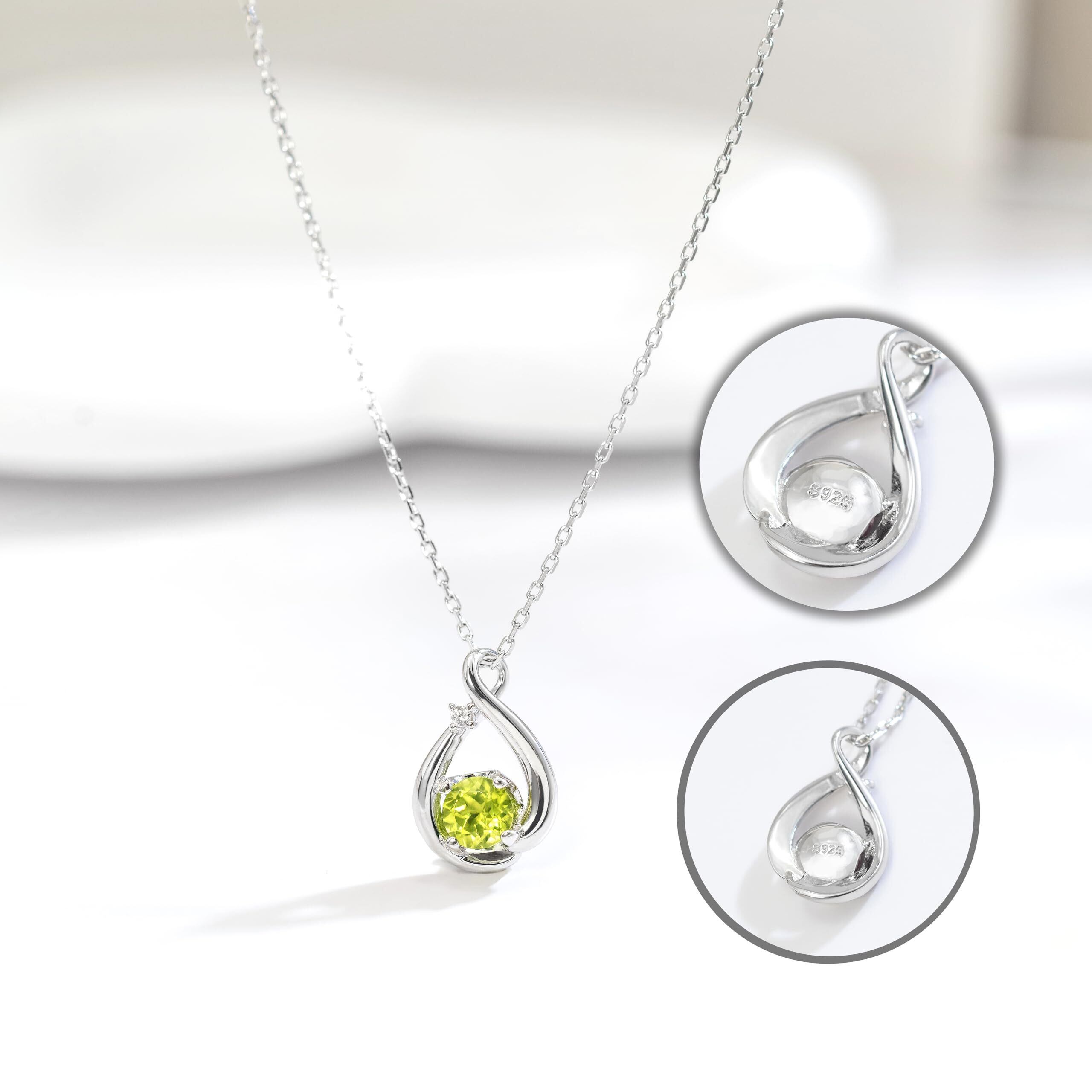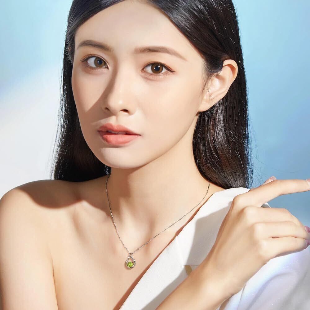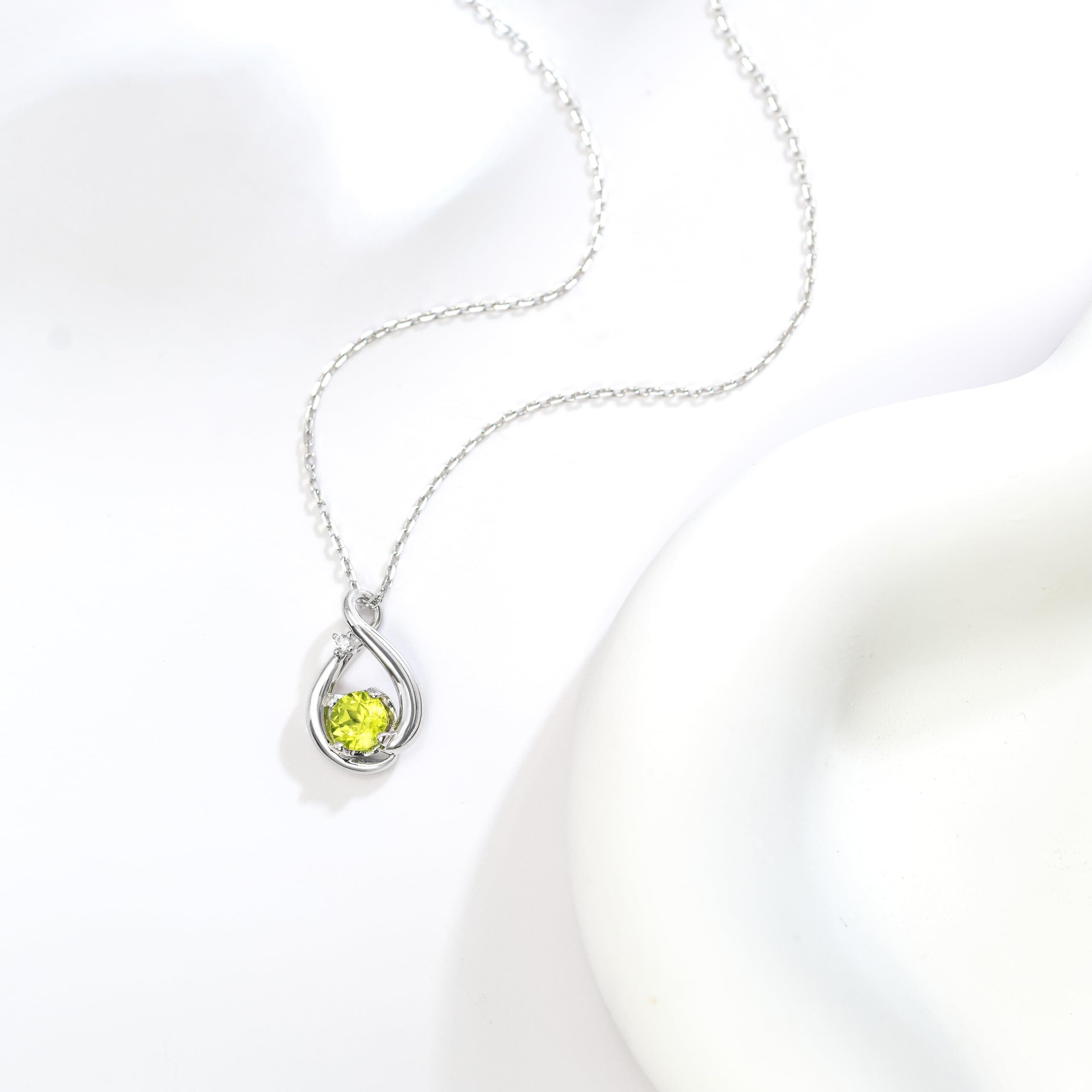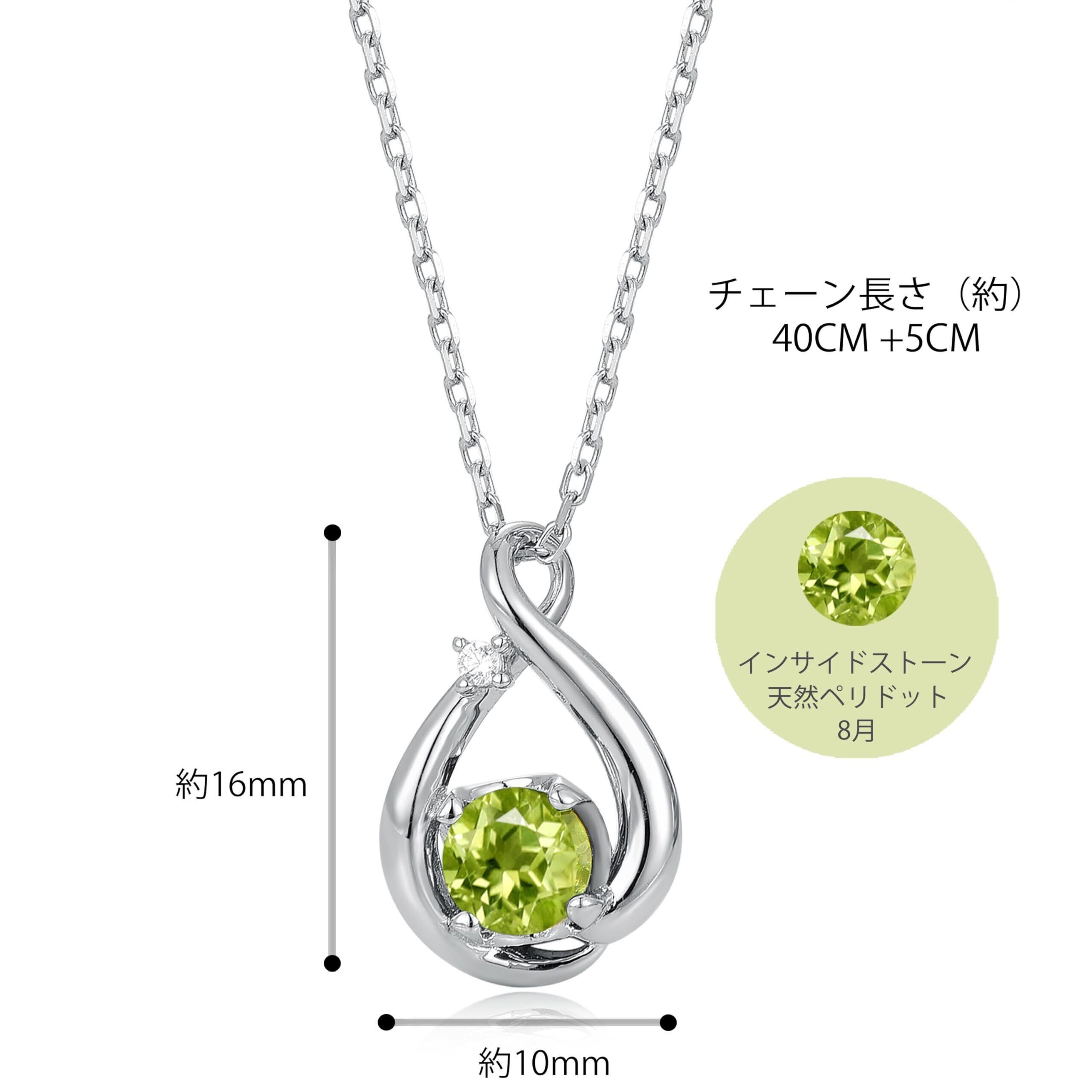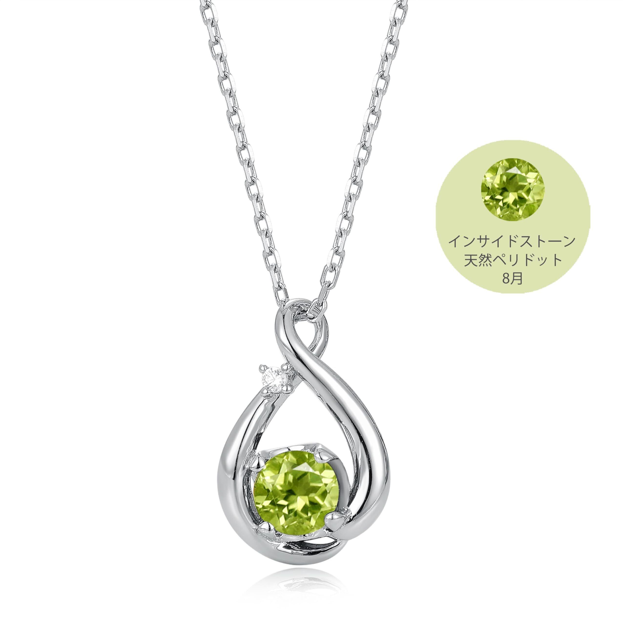 8月の诞生石: 学生やサラリーマンにぴったりのレディースネックレスです。メビウスの輪からインスピレーションを得て、メインストーンはオリーブ色の爽やかなグリーンストーンで、太陽の光に映えます