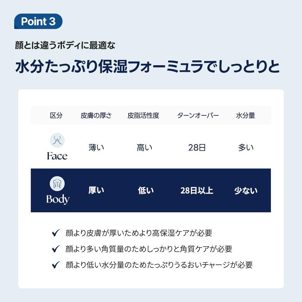 成分特徴: 厳選された保湿成分が肌にやさしく寄り添い、うるおいのバリアをサポートする贅沢なボディクリームです。