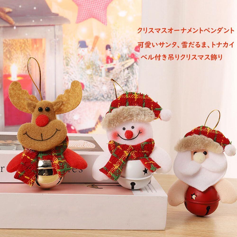 クリスマスオーナメントペンダント3個セット クリスマスツリー飾りサンタクロース雪だるまトナカイ人形 吊りベル付き可愛い クリスマスツリーデコレーション小物 クリスマスツリー装飾 (C)