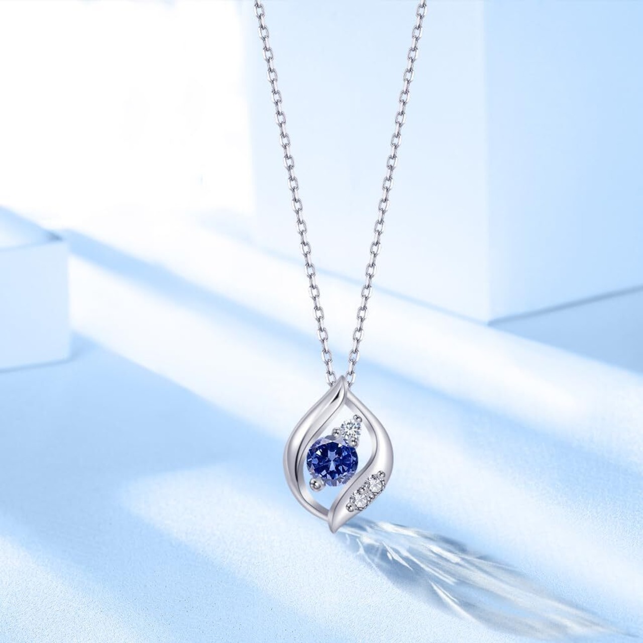 美しいタンザナイト:葉っぱの形をした誕生石ネックレス。鮮やかな葉は希望の象徴です。 純白の葉と魅力なタンザナイト巧みな組み合わせが、誕生石の色合いを際立たせ、存在感を高めます。 女性に人気のジュエリーアクセサリーです