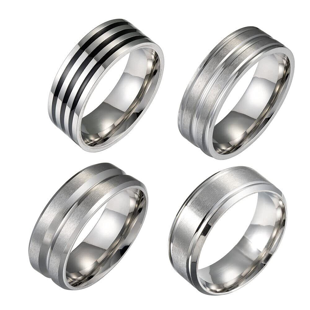 ステンレスのメンズリング4点セットです。3種類ありますので、飽きることなく様々なデザインをお楽しみいただけます