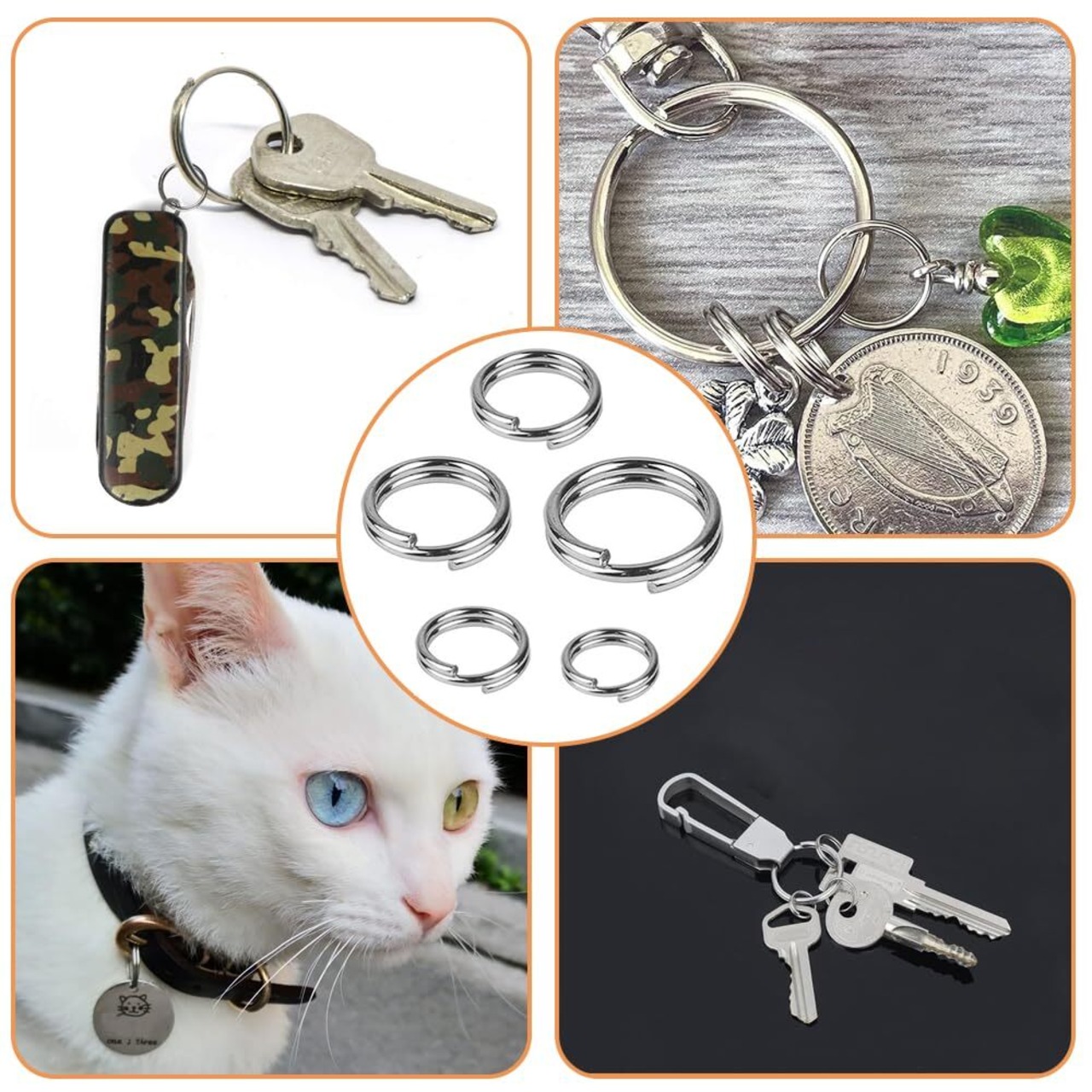 用途は広い:これらのキーリングは異なる鍵を簡単に整理でき、カードや小物をぶら下げたり、手芸品やアートアイテムを作ったりすることができます。キーホルダーは家庭、自動車、オフィスの鍵整理、DIYアクセサリー、キーホルダー接続USB、カード掛け、その他アクセサリー、手芸品制作に最適です。バックル、つり革、チェーンリング、その他の部品を接続するのにも適しています。