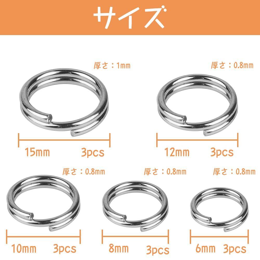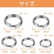 平キーリング キーホルダー キーリング キーフック 二重リング 軽量 脱落防止 高強度 防錆 紛失防止 カラビナ イヤリング/ネックレスの連結用に 外径6mm/8mm/10mm/12mm/15mm(15pcs)