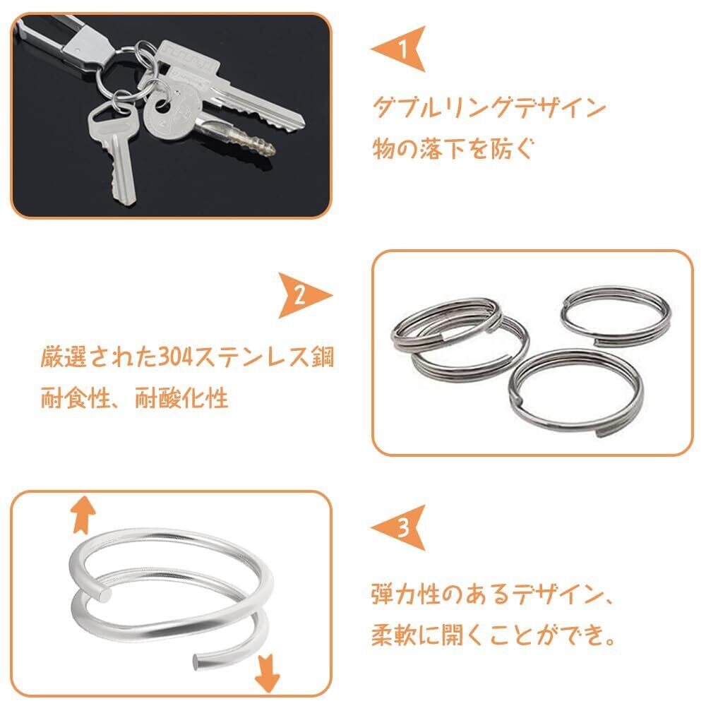材質:良質なステンレス鋼で作られ、キーホルダリングは長時間変形せず、元の外観を維持することができる。防錆、耐久性、耐用年数が長い。