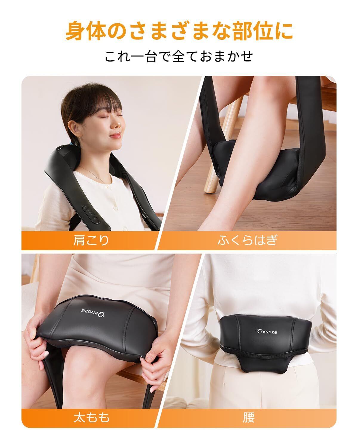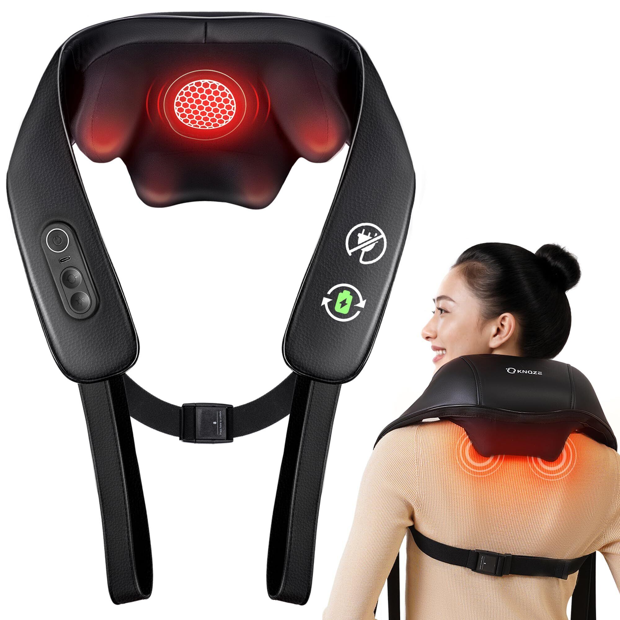 KNQZE ネック 肩 リラクゼーション器 Type-C充電式 新登場 一台多役 首 肩 腰 太もも ネック リラックス コードレス 指圧 15分タイマー付き 3段階速度 2段階温熱レベル 双方向回転 コンパクト 軽量 静音 ベルト付き 両手解放 家庭用 職場用 男女兼用 取扱説明書付き 誕生日 プレゼント 敬老の日 クリスマス 新年ギフト ブラック