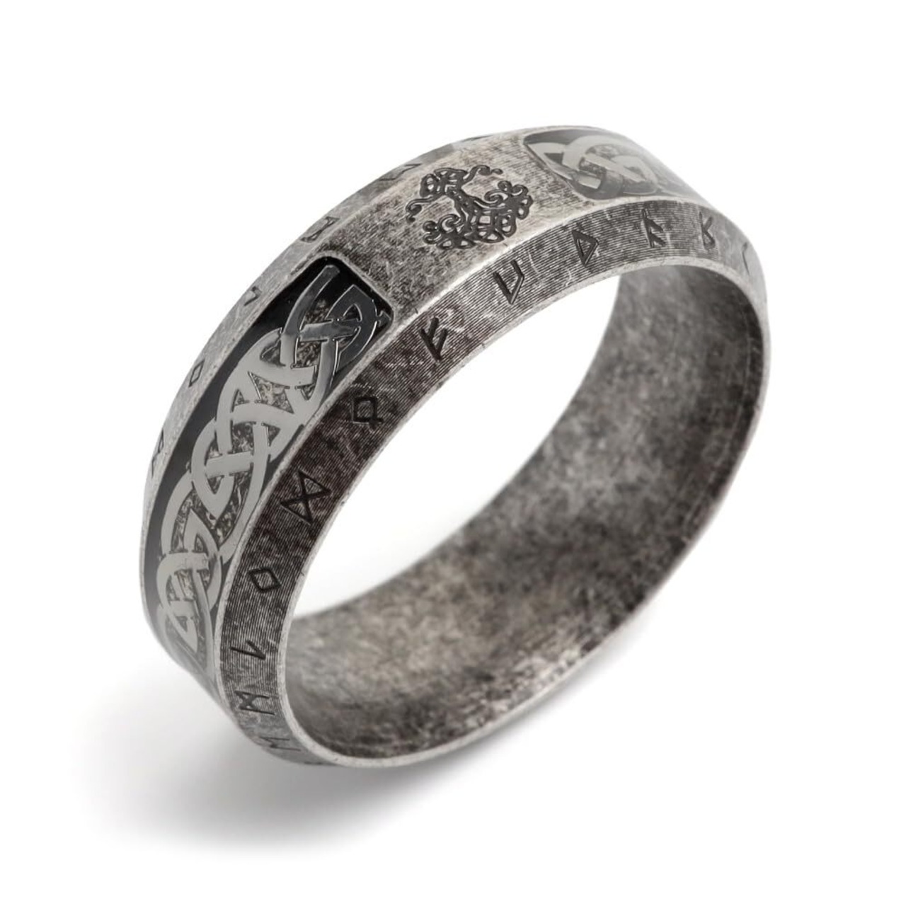 ケルト文様とケルト文字の組み合わせで幻想的な雰囲気のあるリング。