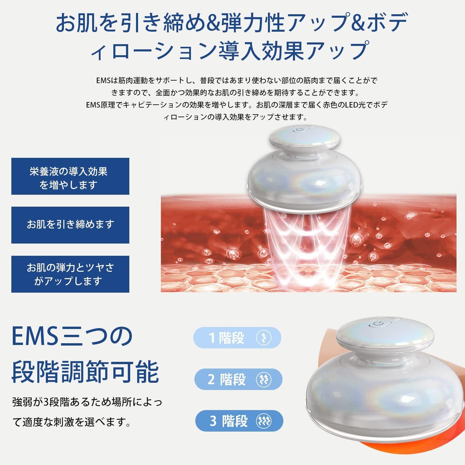 【キャビテーション】キャビテーションはもともと空洞現象という意味で、圧力の差によって液体の中に気泡が発生する現象のことです。エステにおけるキャビテーションは、その原理を利用して、エステとお肌を引き締める効果を実現します。また、当キャビテーションはEMS技術を使用し、EMS方式はほかの方式と比べて、作用はより効率的に筋肉運動をサポートし、普段ではあまり使わない部位の筋肉まで届くことができますので、エステとお肌を引き締める効果が期待できます。