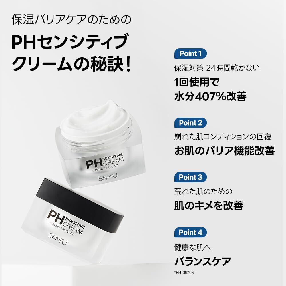サミュ PHスキンケア3-STEPセット SAM'U PH Sensitive Cream, PH Sensitive Toner, PH Sensitive Facial Treatment 保湿クリーム 化粧水 トナー 保湿 乳液 顔 スキンケア