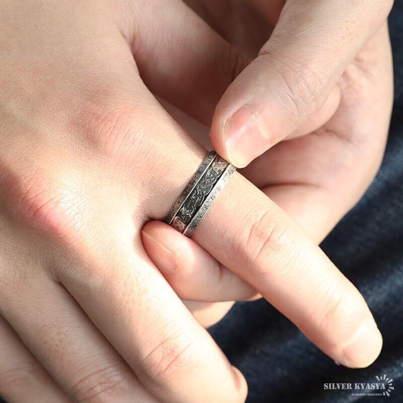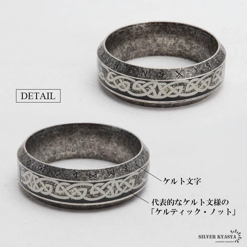 ケルト文様とケルト文字の組み合わせで幻想的な雰囲気のあるリング。