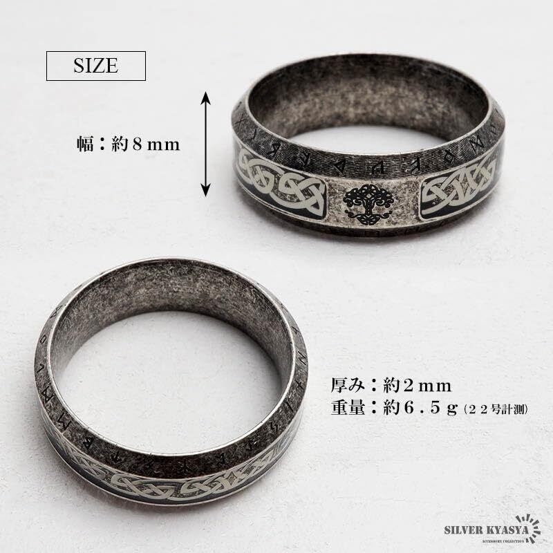 [silver KYASYA]ステンレス ケルト模様リング アンティークゴールド つや消し加工 ユグドラシル 生命の樹 ヴィンテージリング メンズ 指輪 男性 金属アレルギー対応